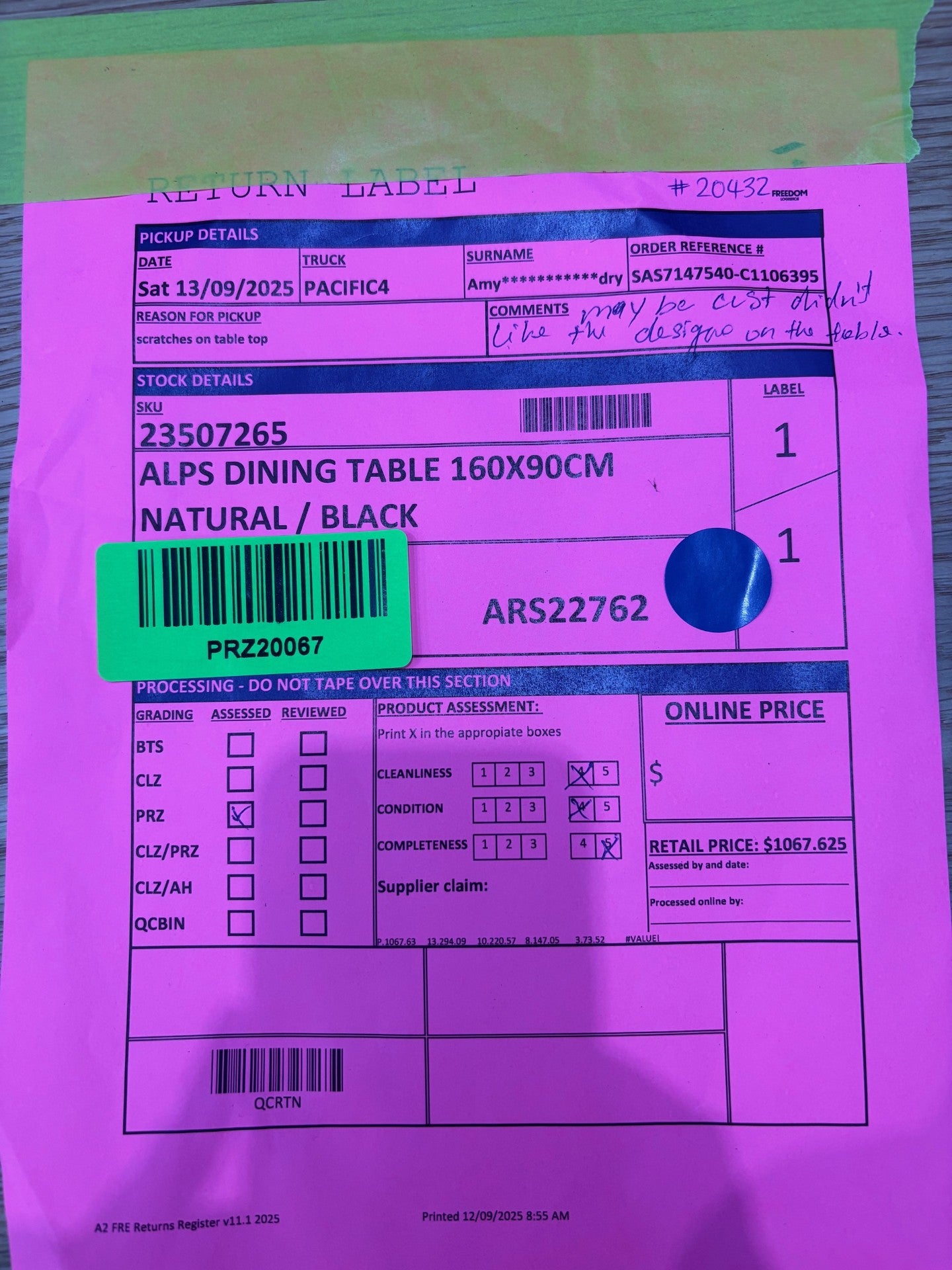 NZ PRZ20067 Alps Dining Table 160x90cm Natural/Black