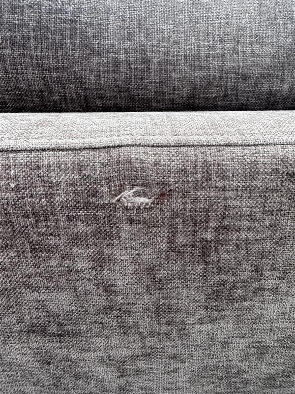 RETURN REASON: Cut on back RH side of sofa with red dyeΒ