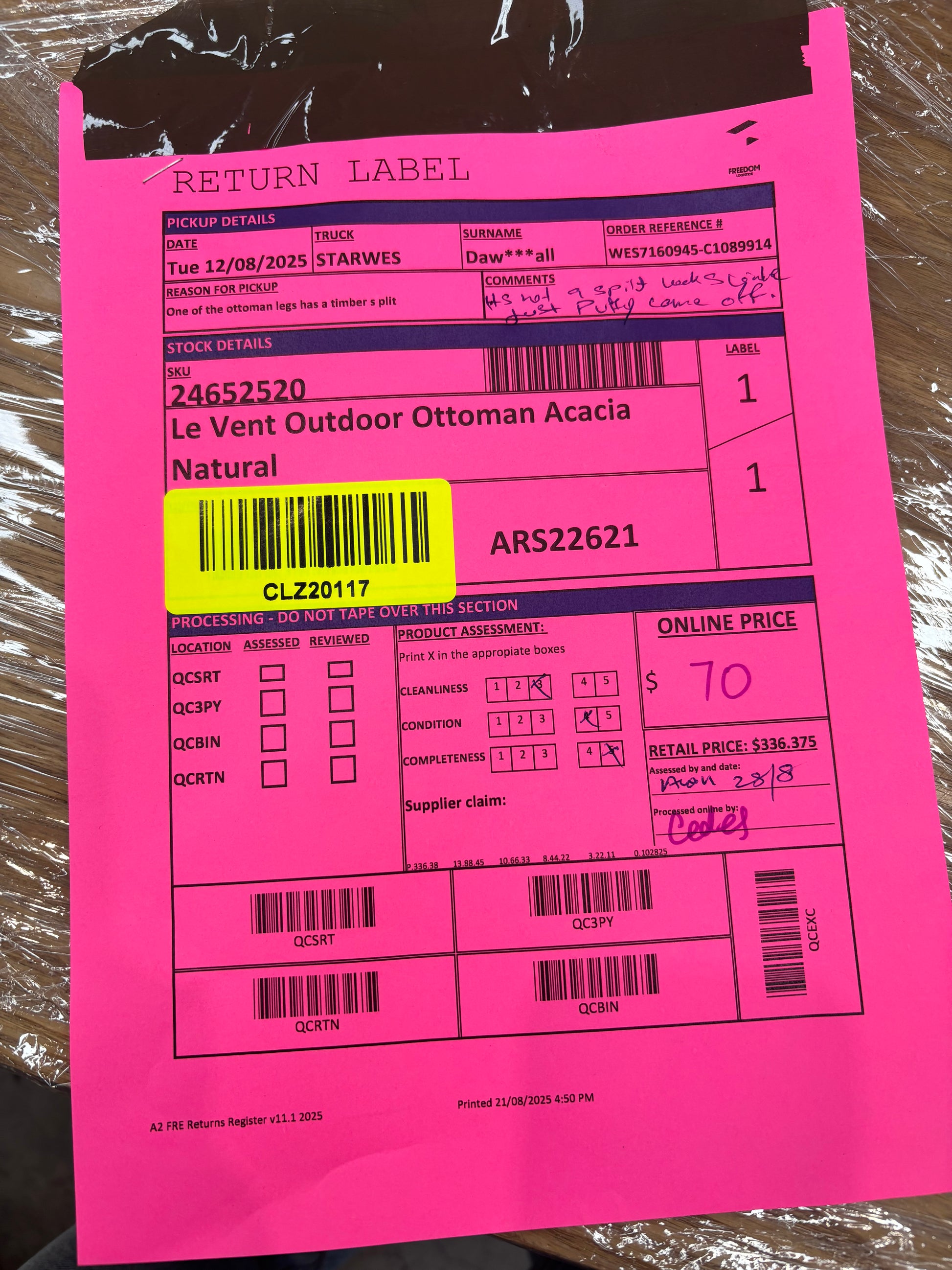 ASSESSOR NOTES: It's not a split in the wood. Appears that putty has come off.Β