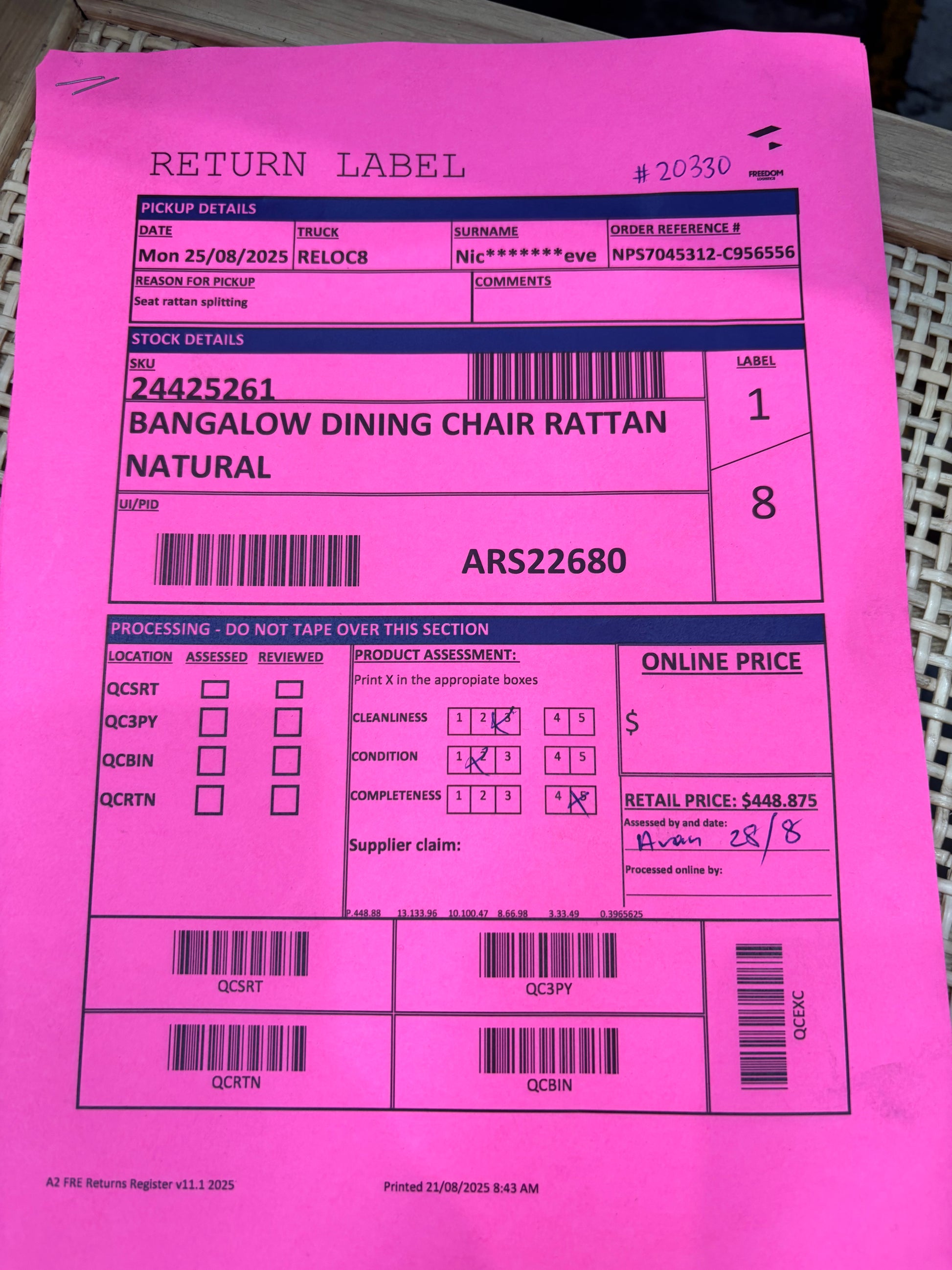 NZ CLZ20118 Bangalow Dining Chair Rattan Natural