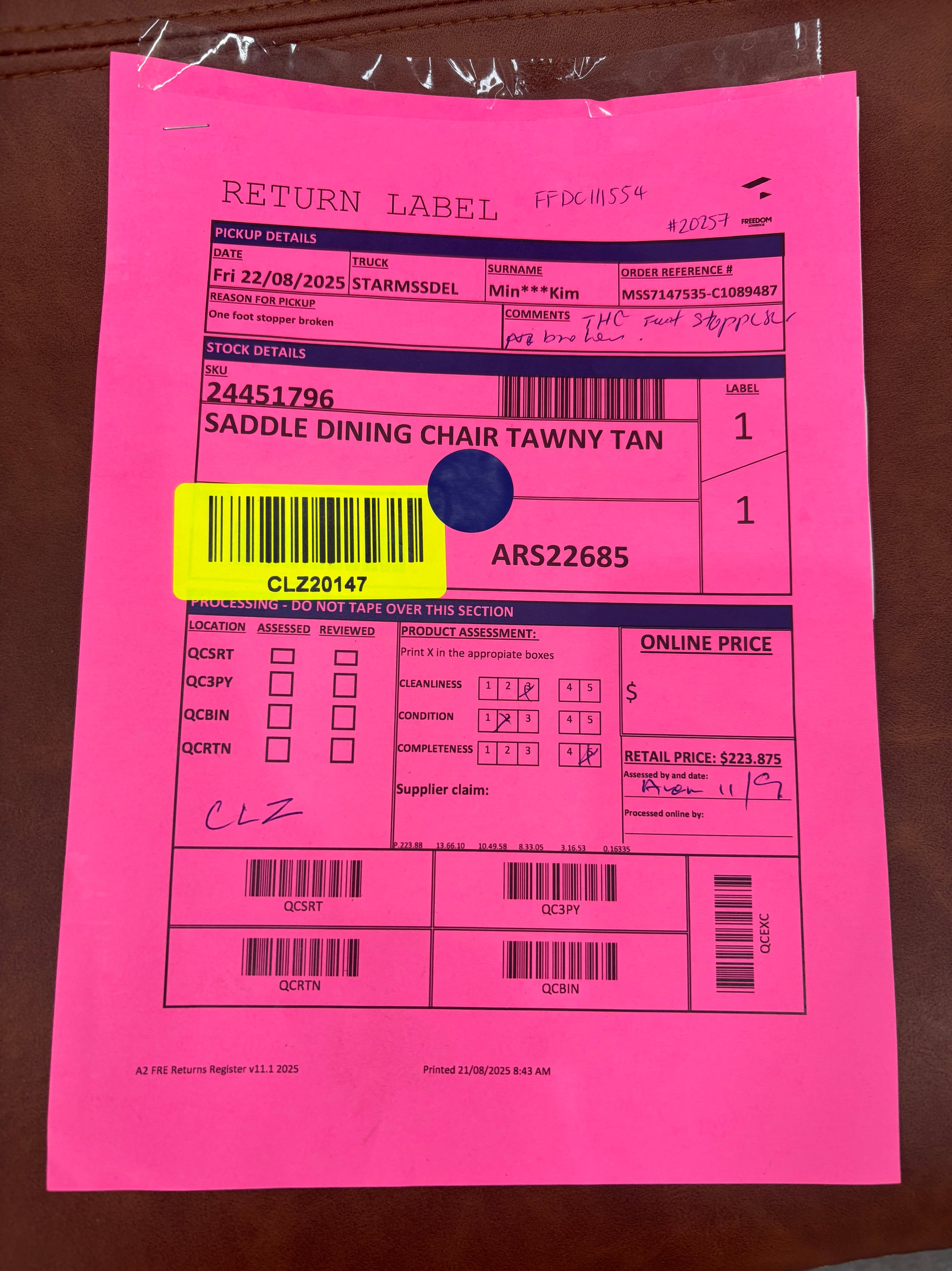 NZ CLZ20147 Saddle Dining Chair Tawny Tan