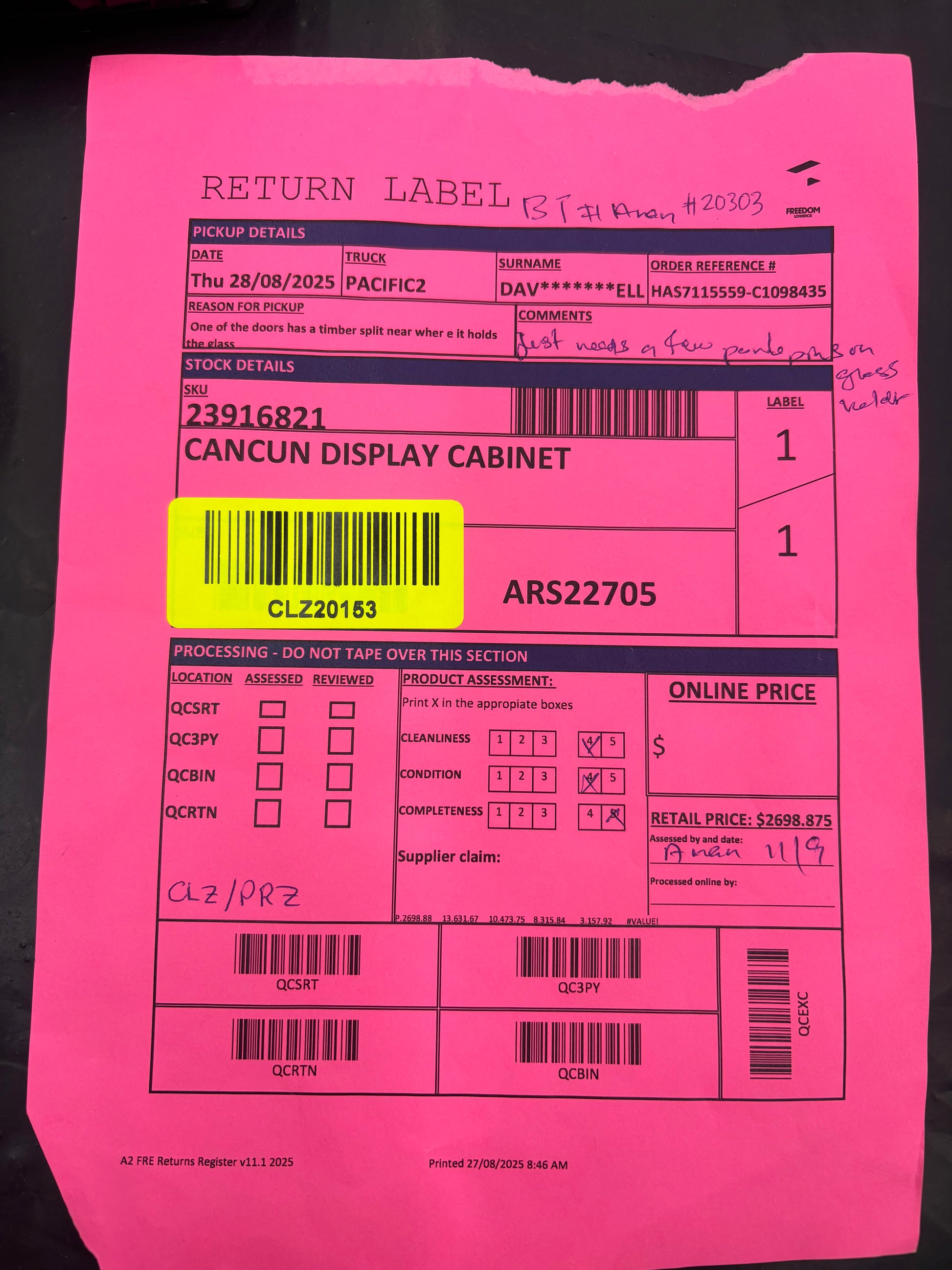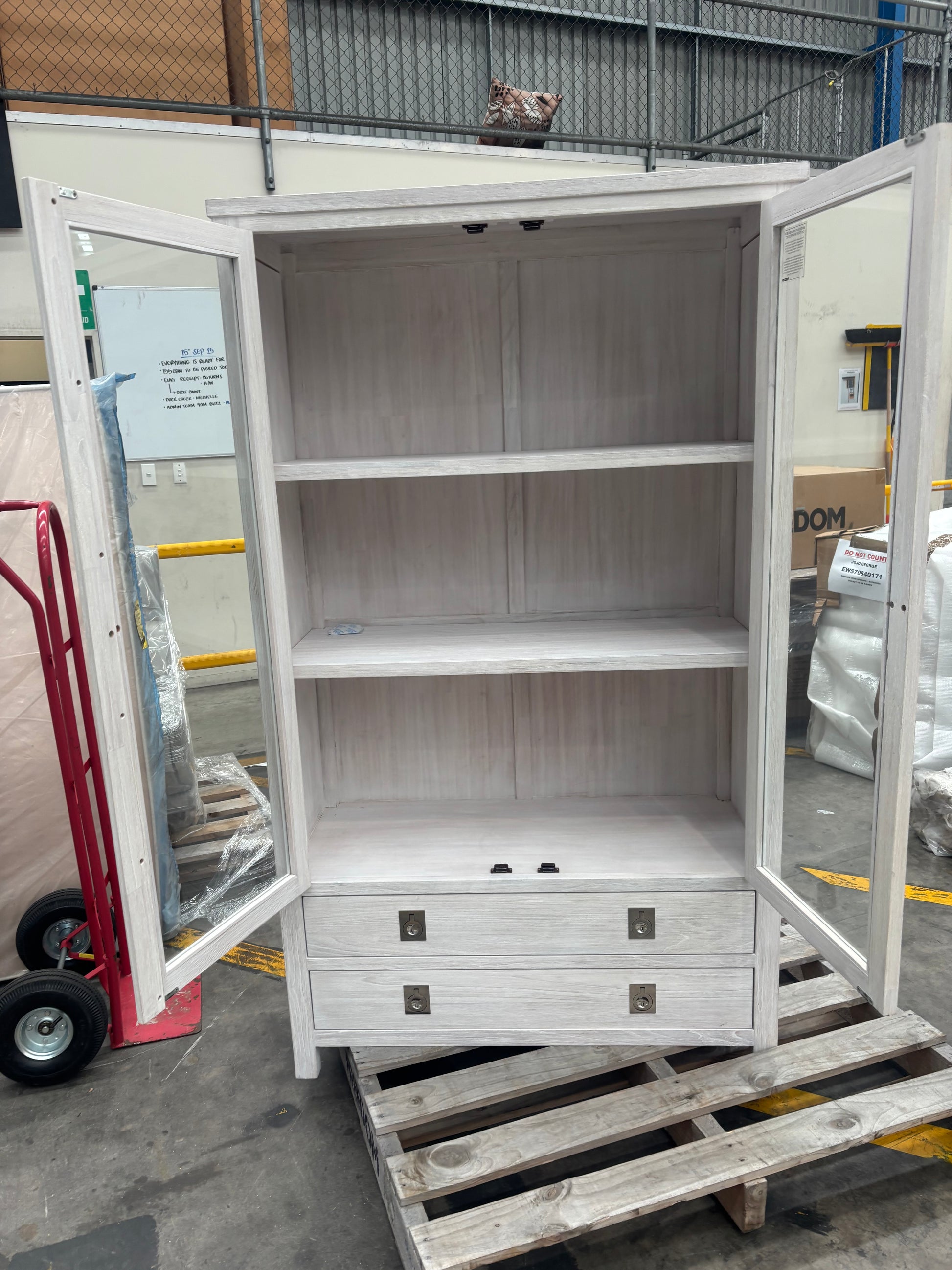 RETURN REASON: One of the doors has a timber split near where it holds the glass