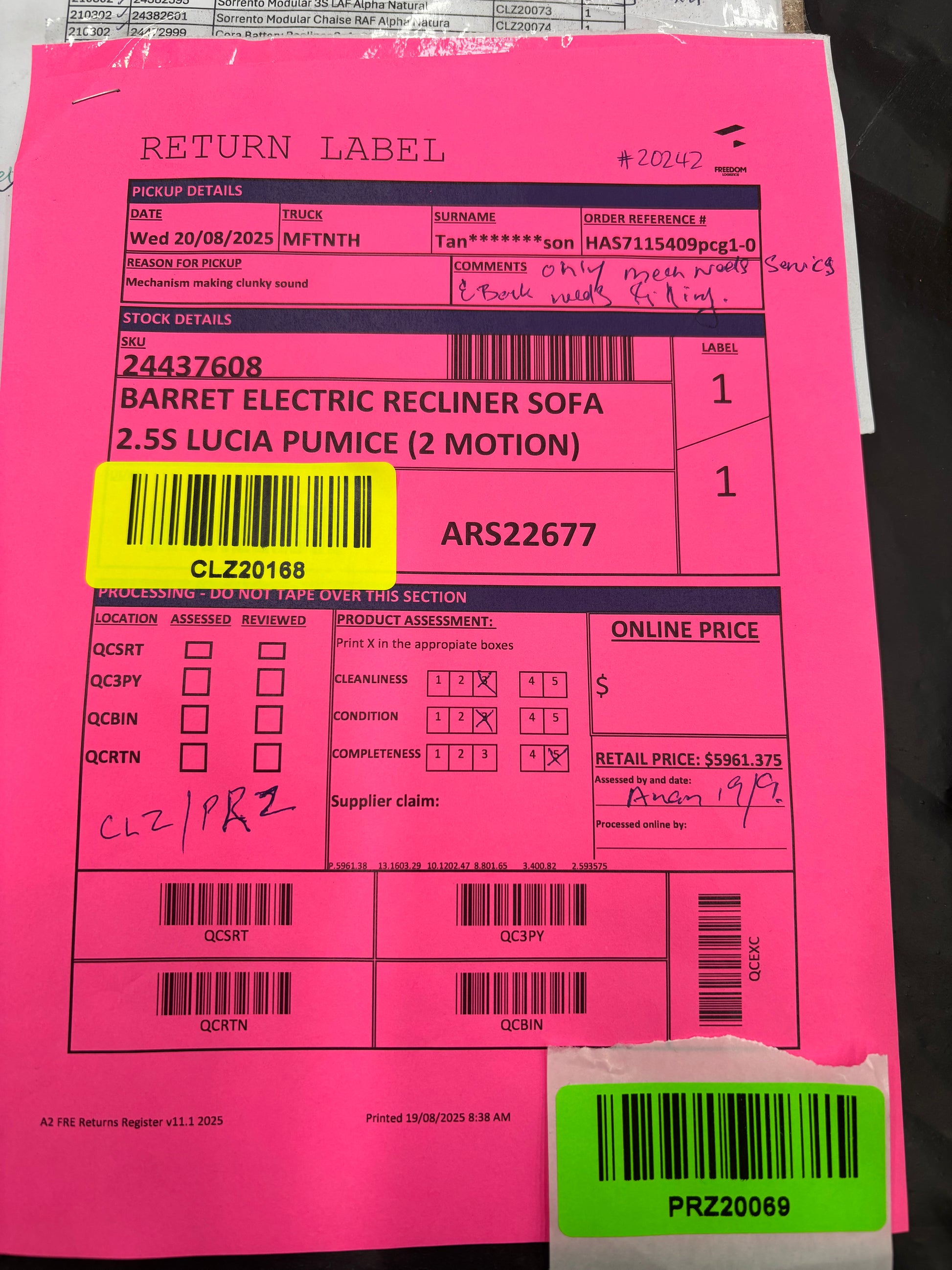 NZ CLZ20168 Barret Electric Recliner Sofa 2.5S Lucia Pumice (2 Motion)
