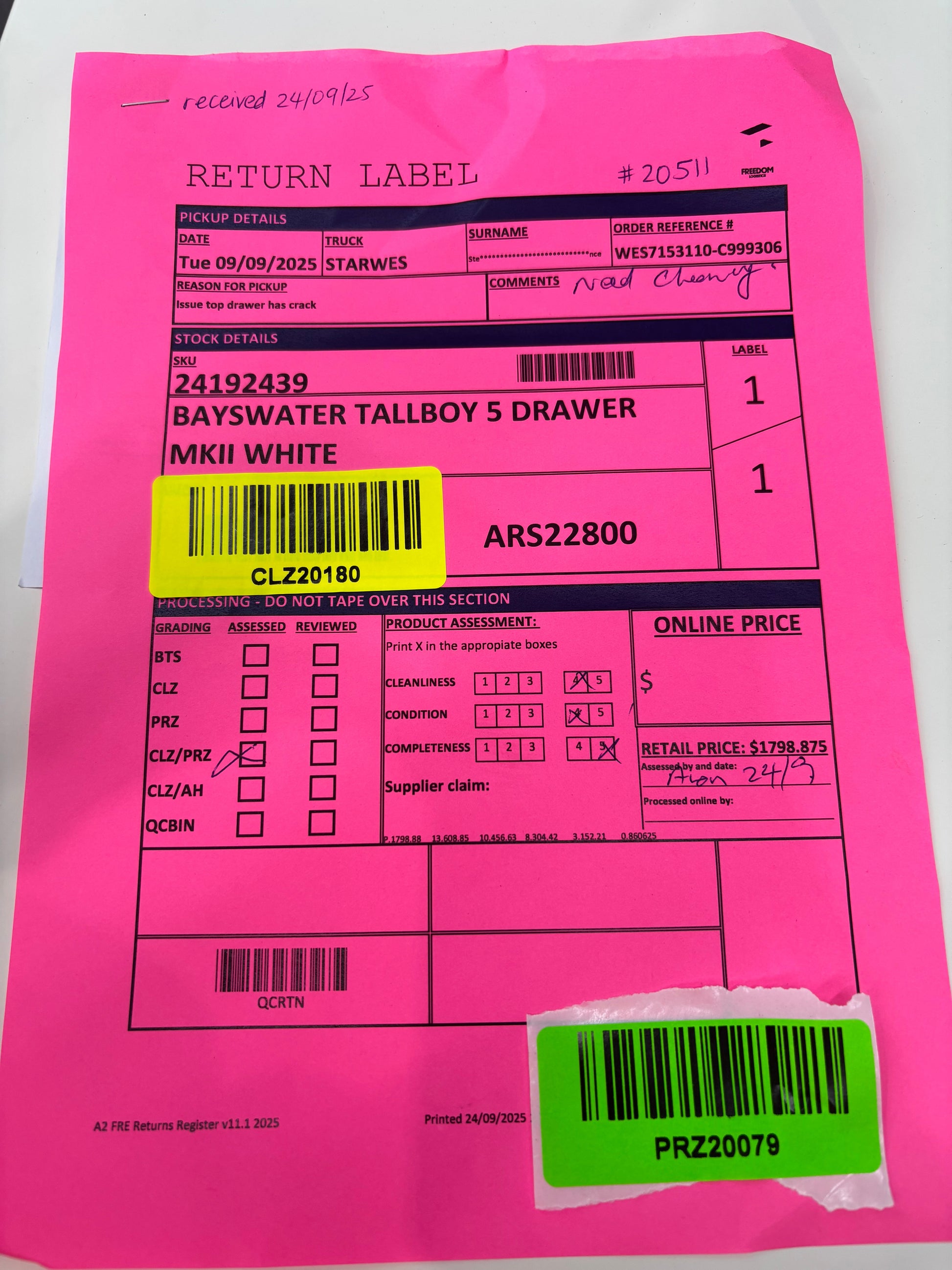 NZ PRZ20079 Bayswater Tallboy 5 Drawer MKII White