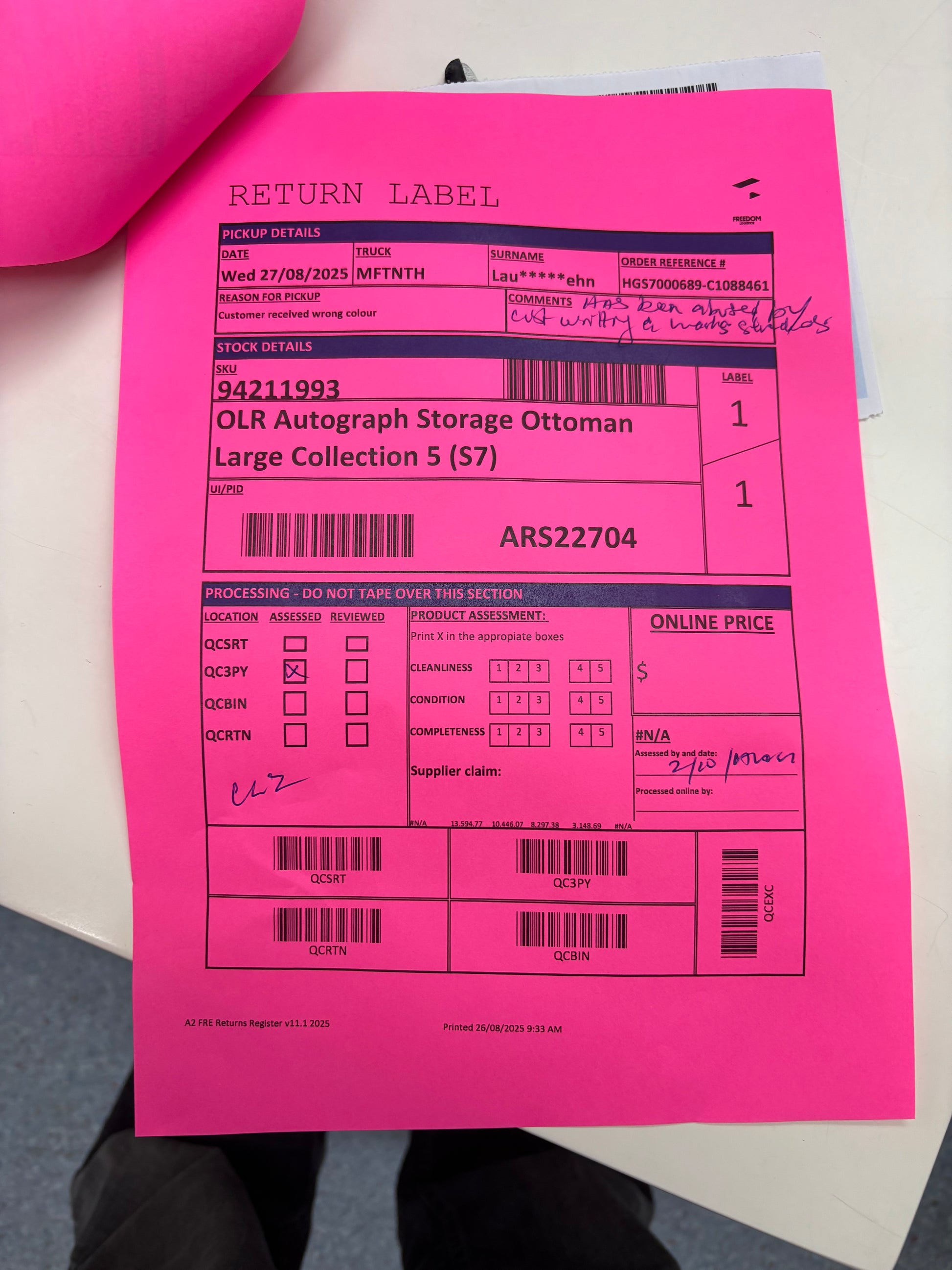 ASSESSOR NOTES: Has been used, scratch marks, manufacturer markings