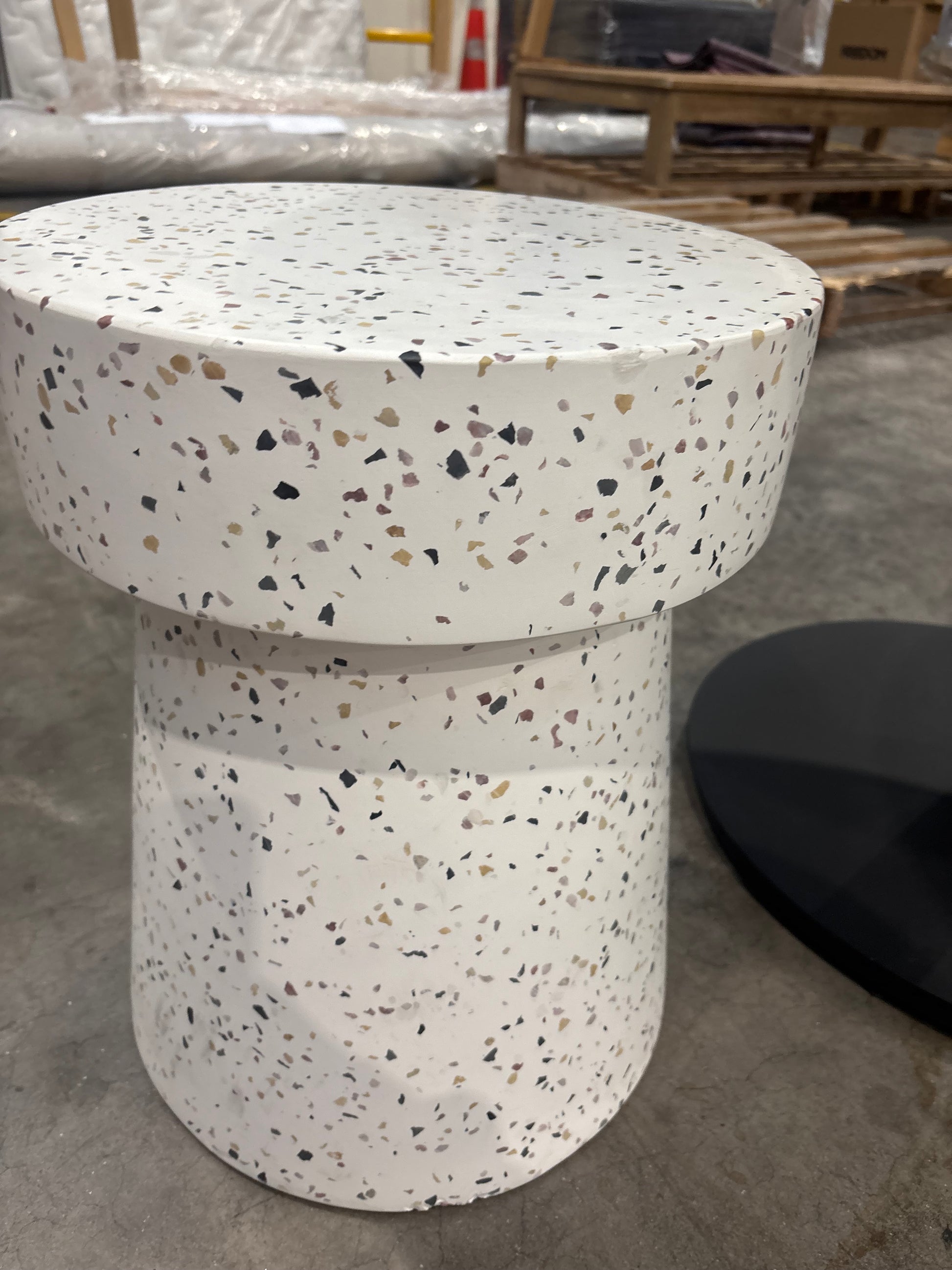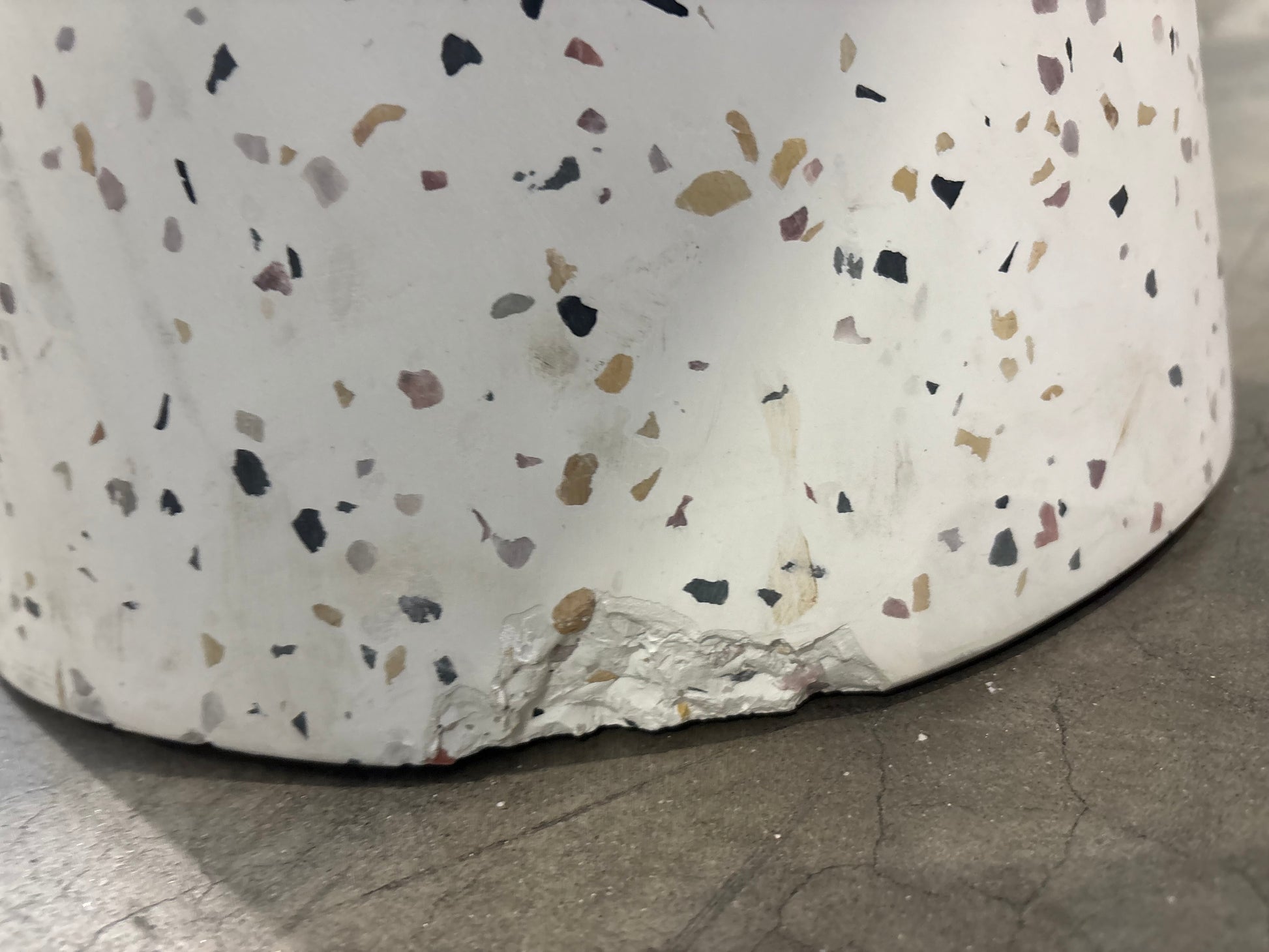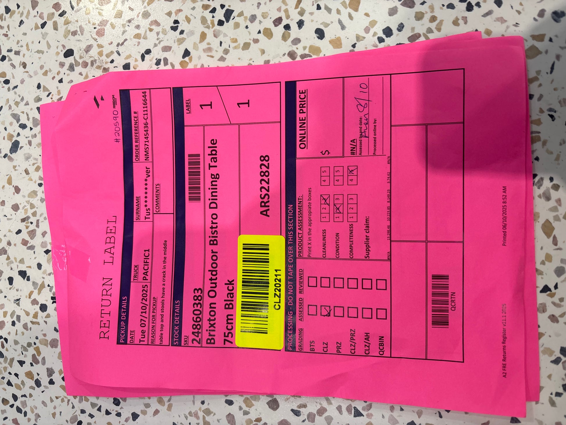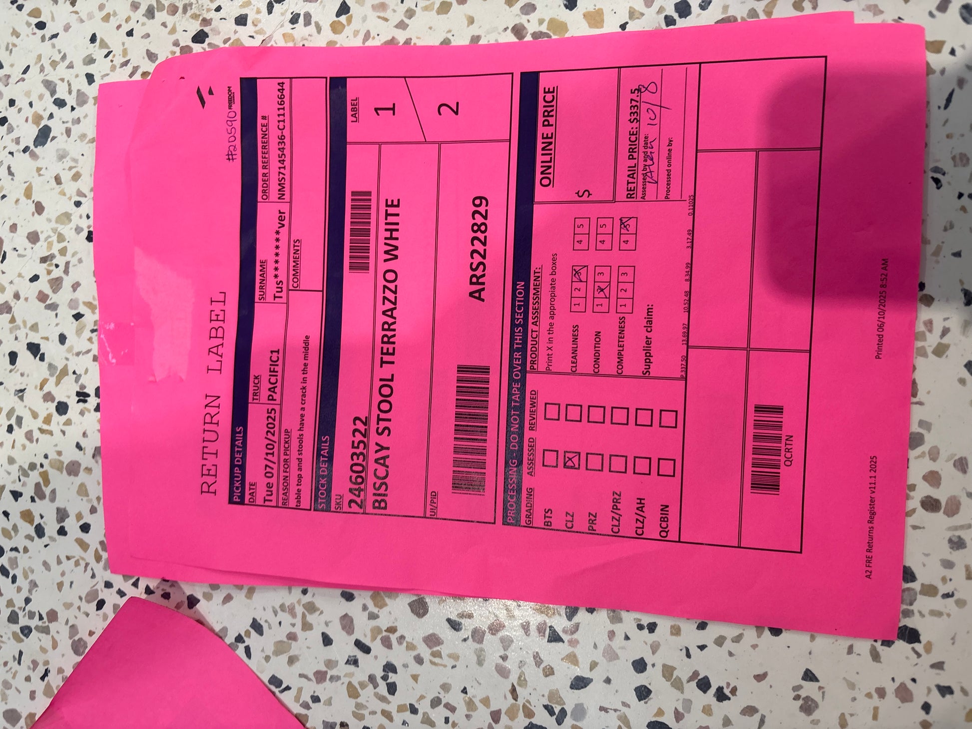 ASSESSOR NOTES: Tabletop has a crack in the middle, stools are slightly chipped at bottom