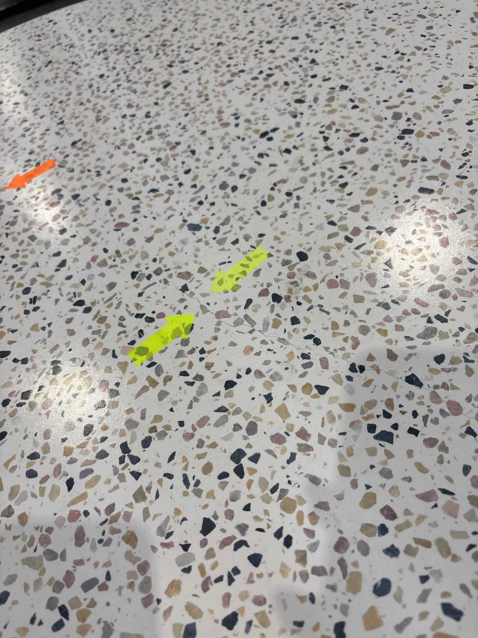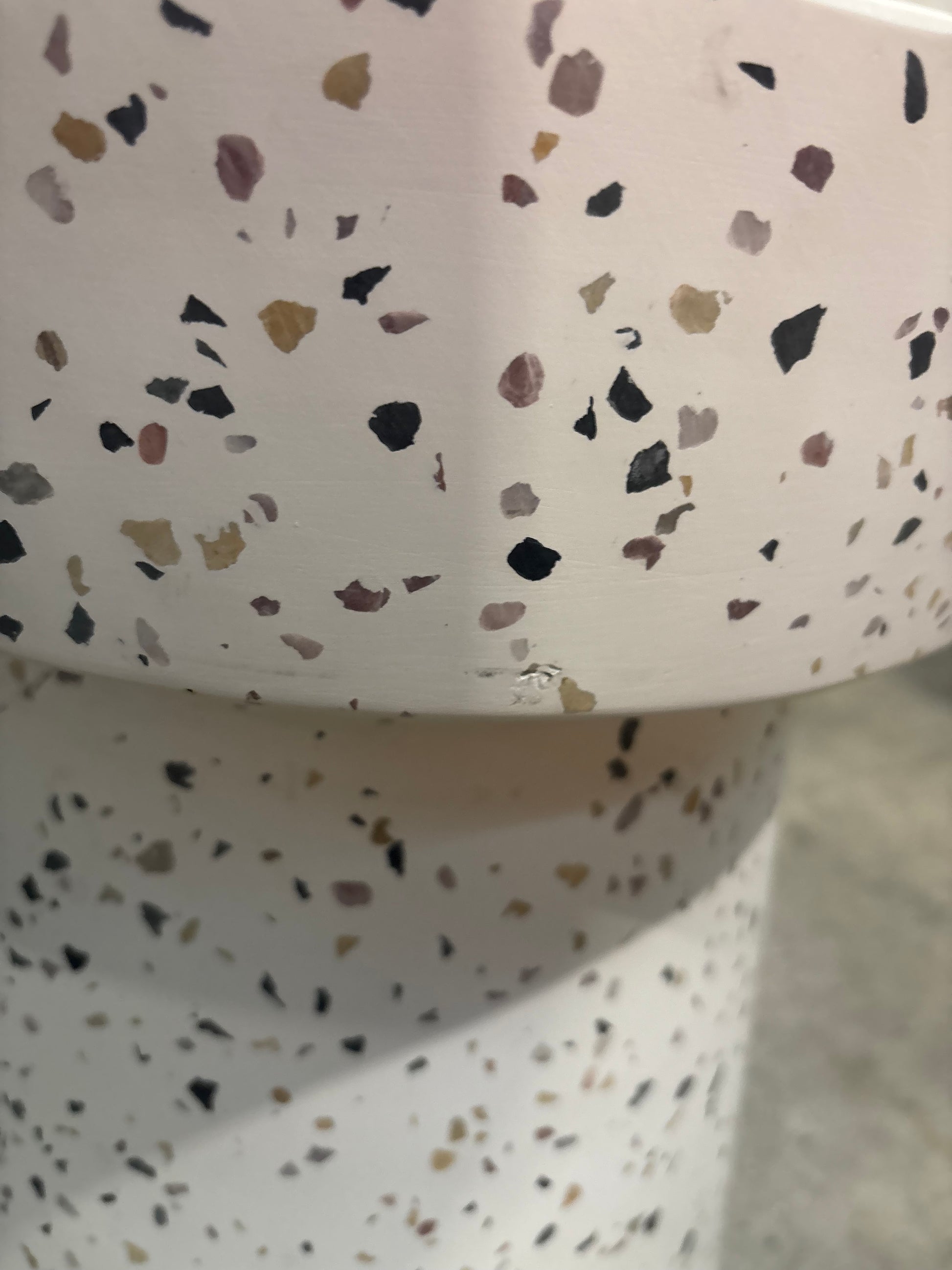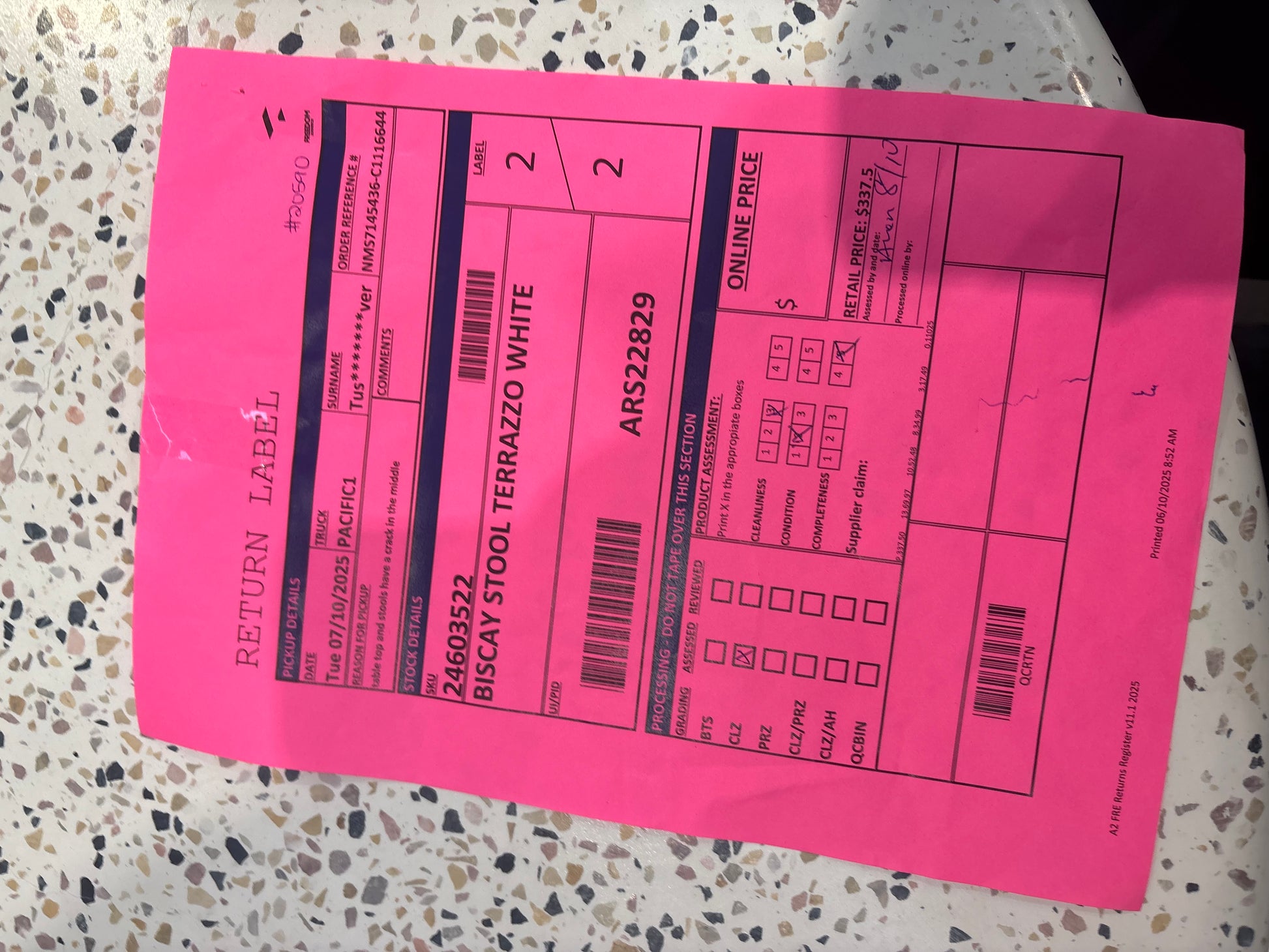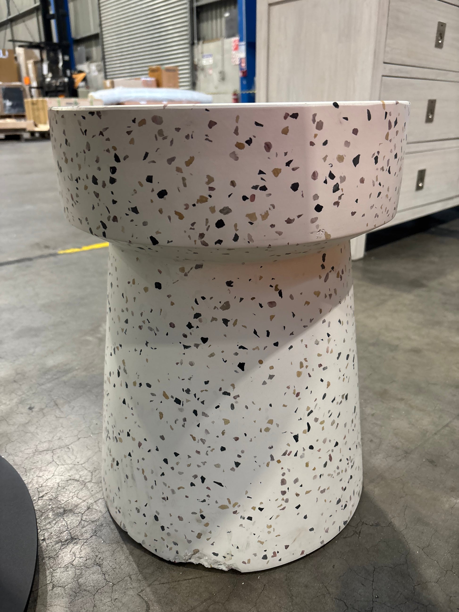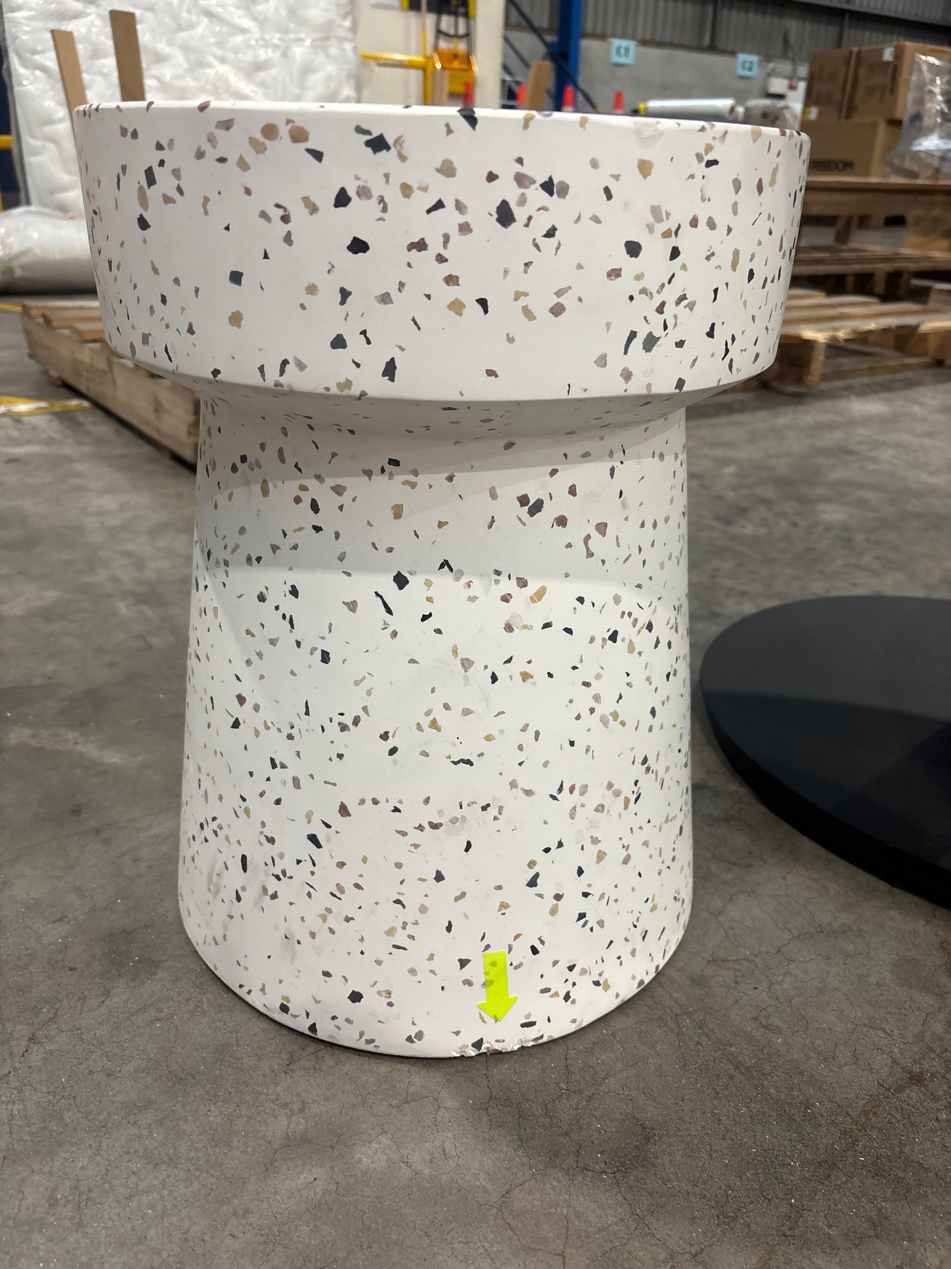 ASSESSOR NOTES: Tabletop has a crack in the middle, stools are slightly chipped at bottom