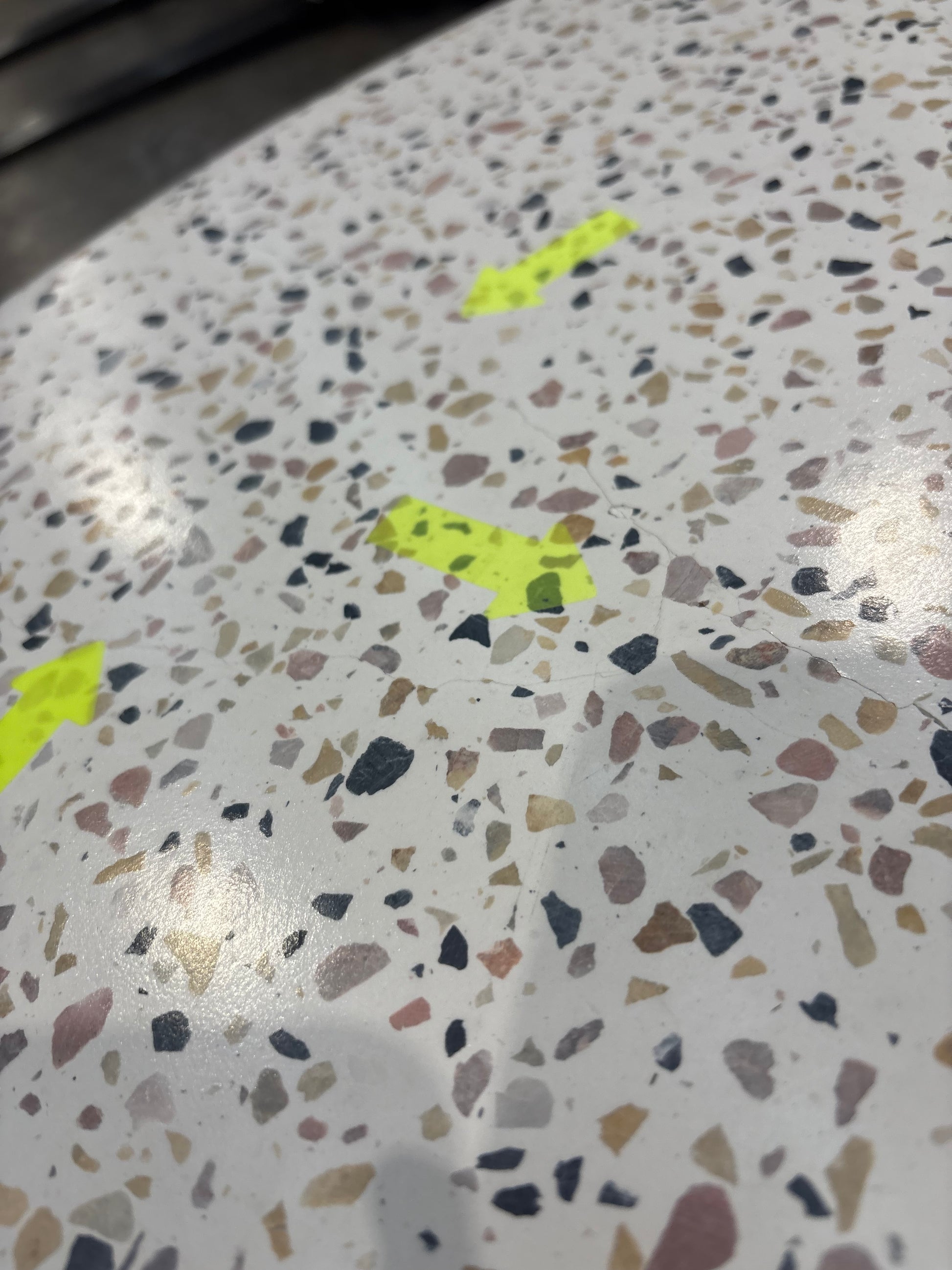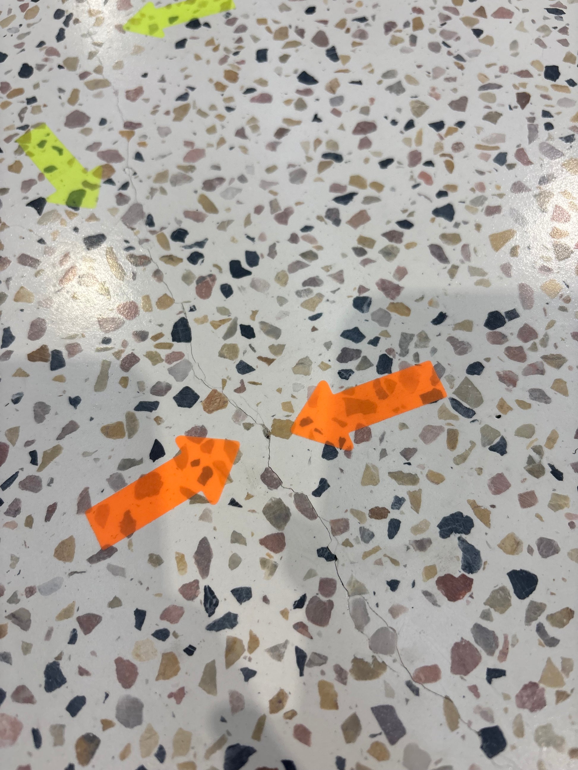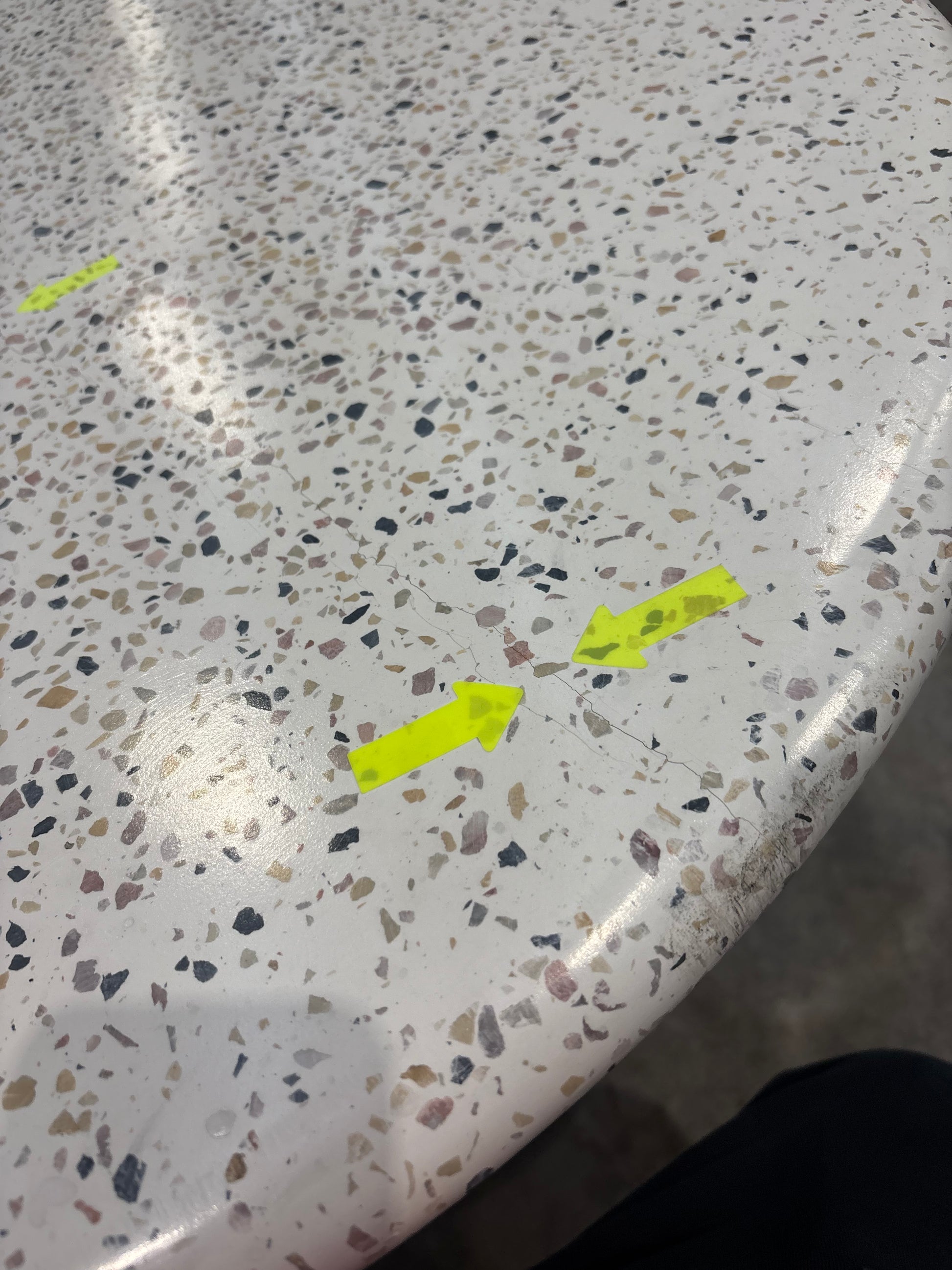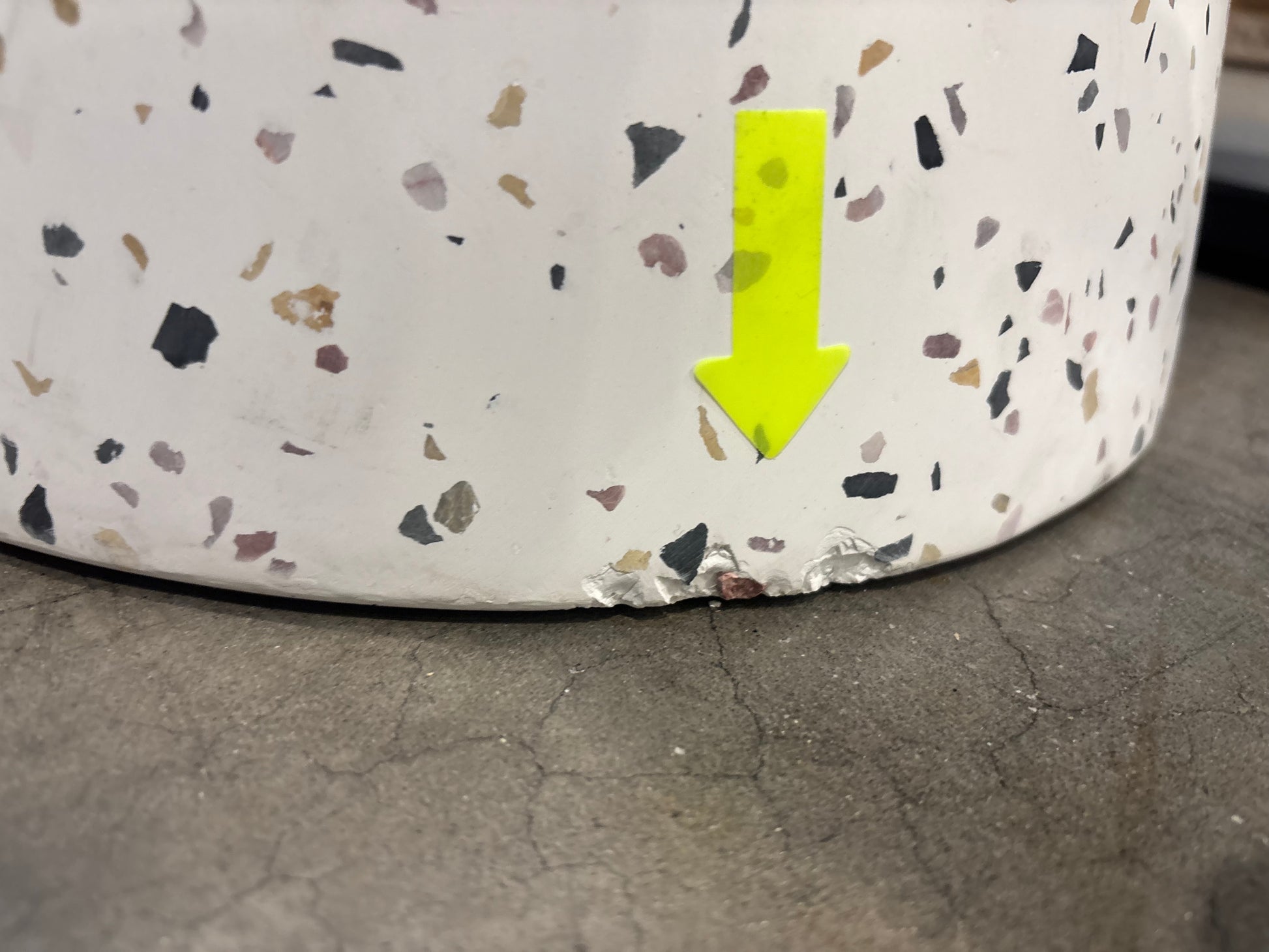 ASSESSOR NOTES: Tabletop has a crack in the middle, stools are slightly chipped at bottom