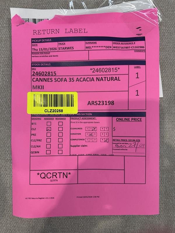 NZ CLZ20258 Cannes Sofa 3S Acacia Natural