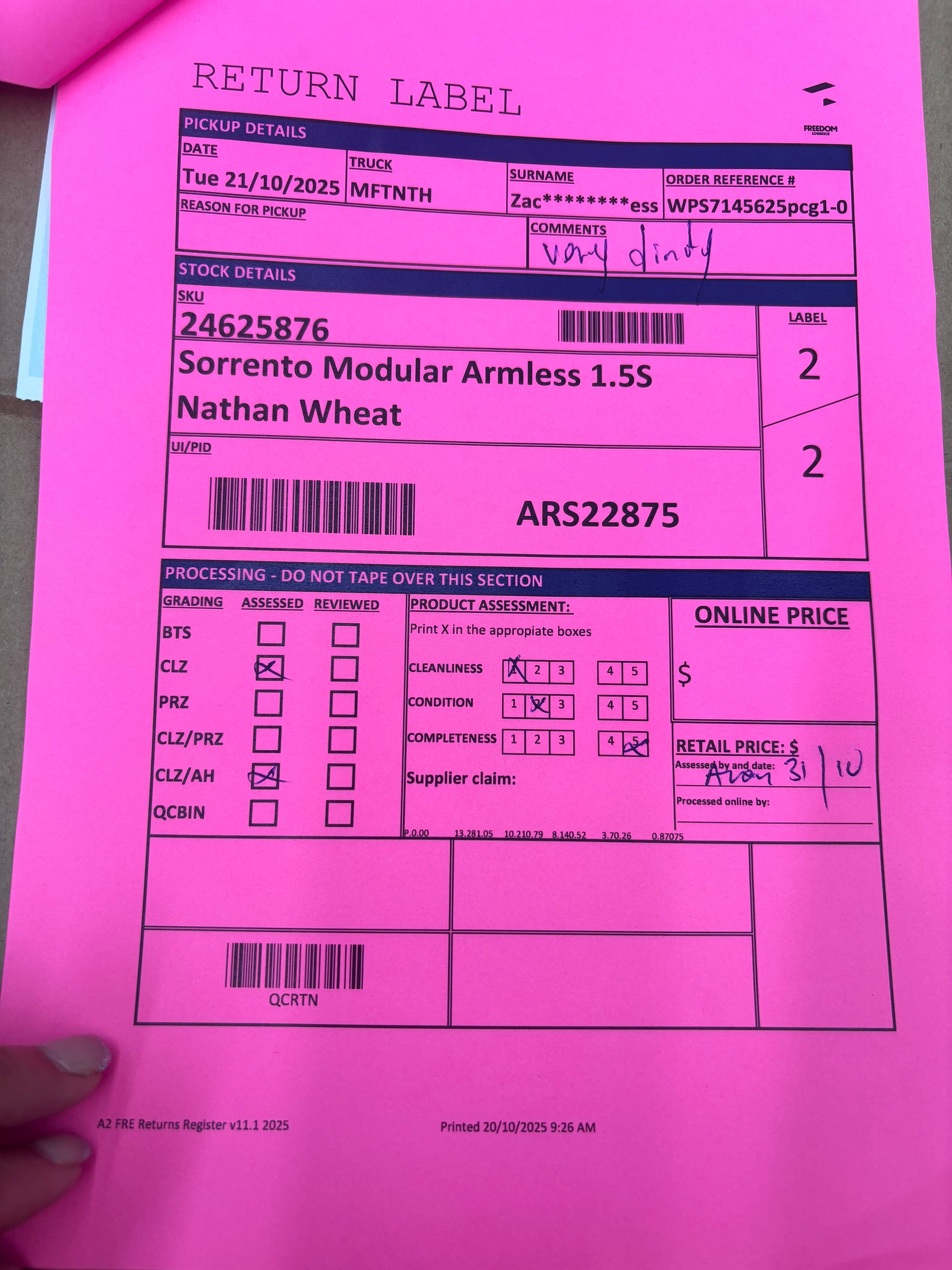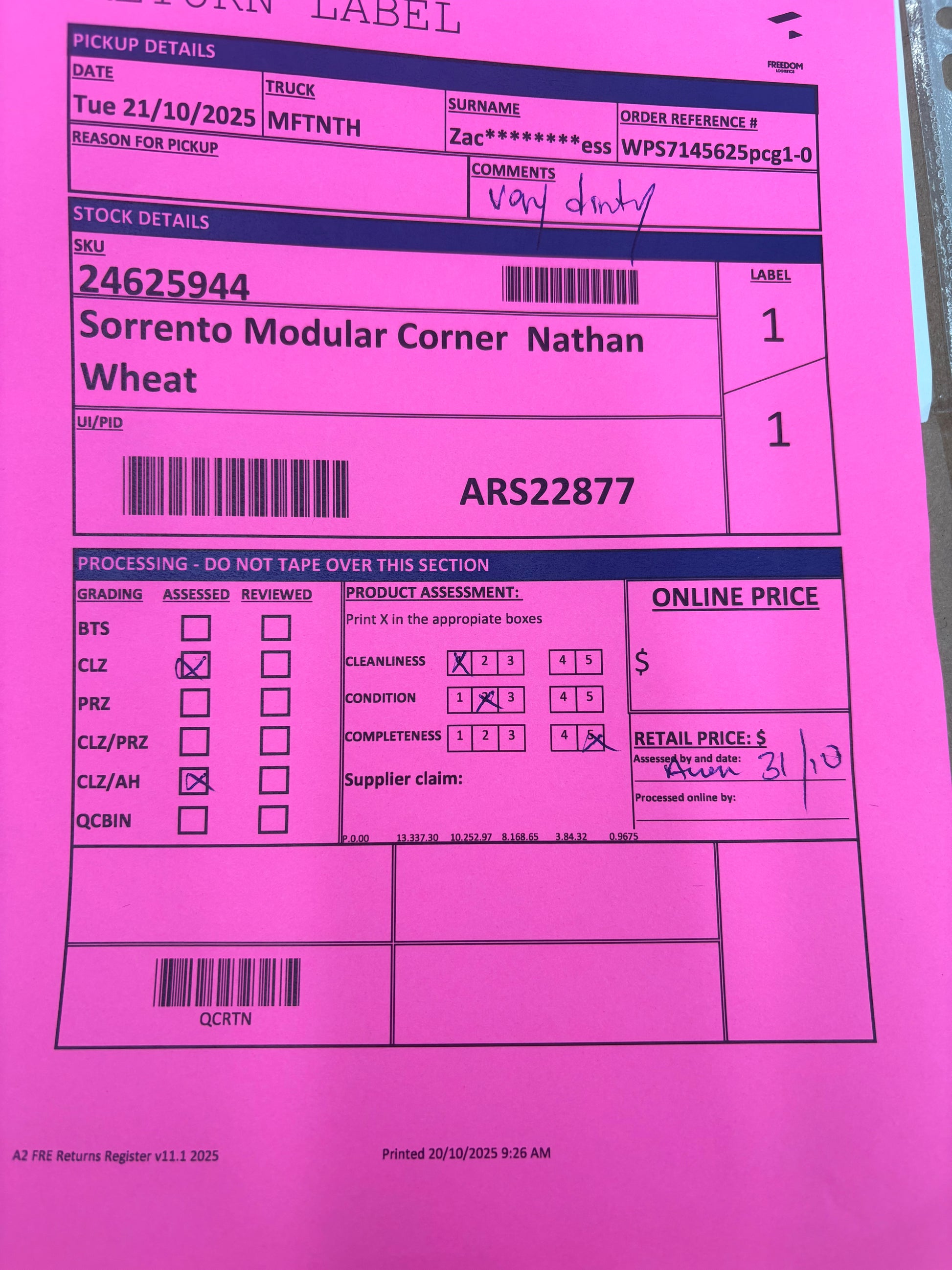 NZ CLZ20268 5pc Sorrento Modular Nathan Wheat Set