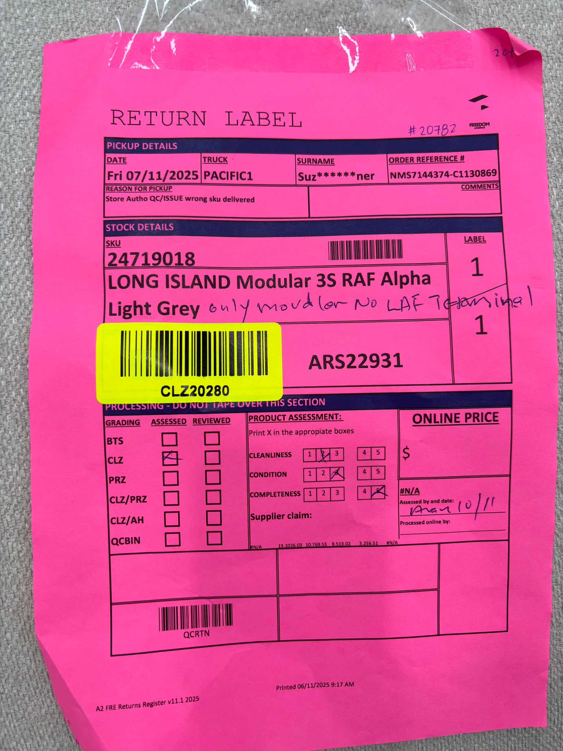 NZ CLZ20280 Long Island Modular 3S RAF Alpha Light Grey