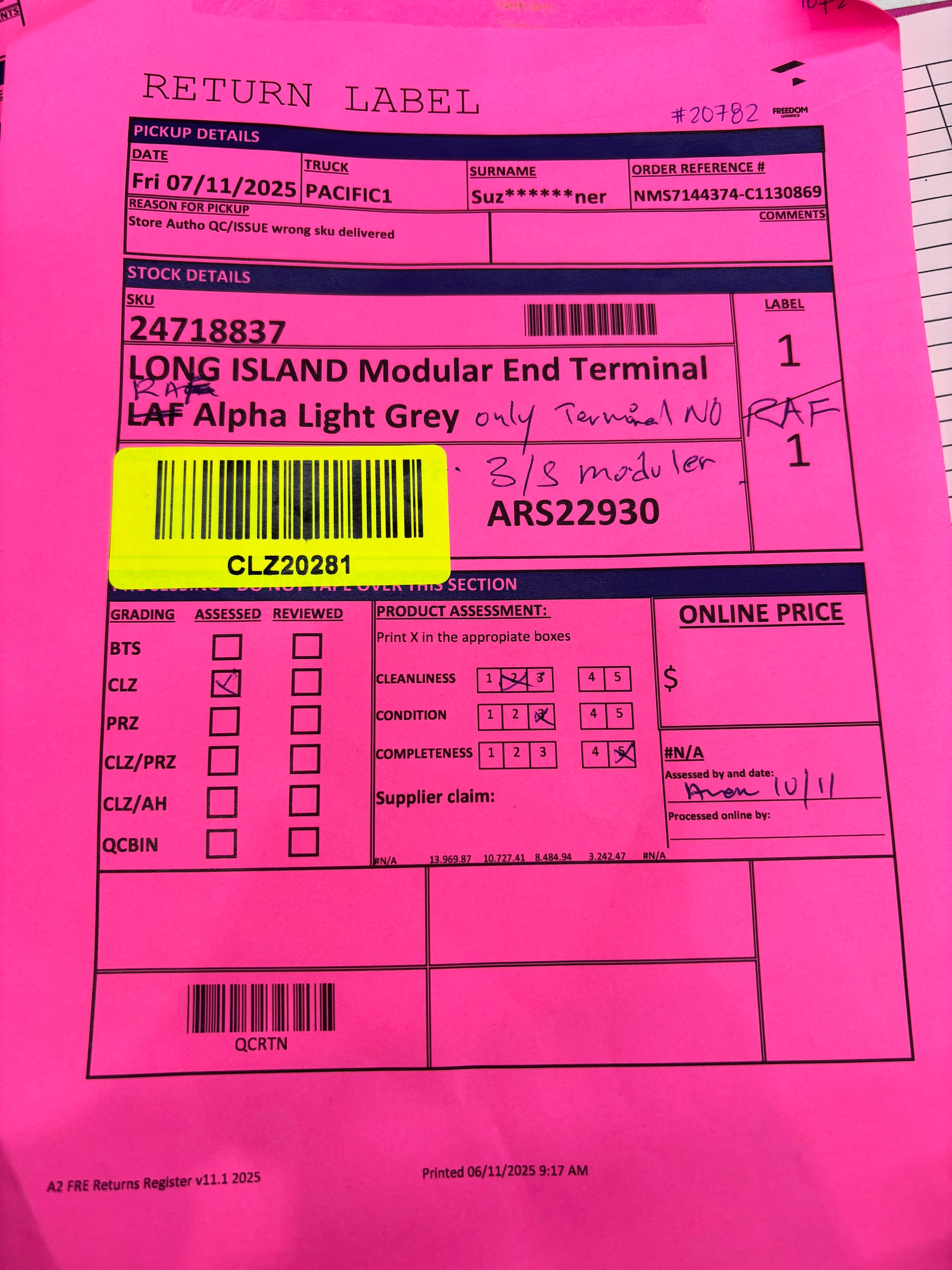 NZ CLZ20281 Long Island Modular End Terminal RAF Alpha Light Grey