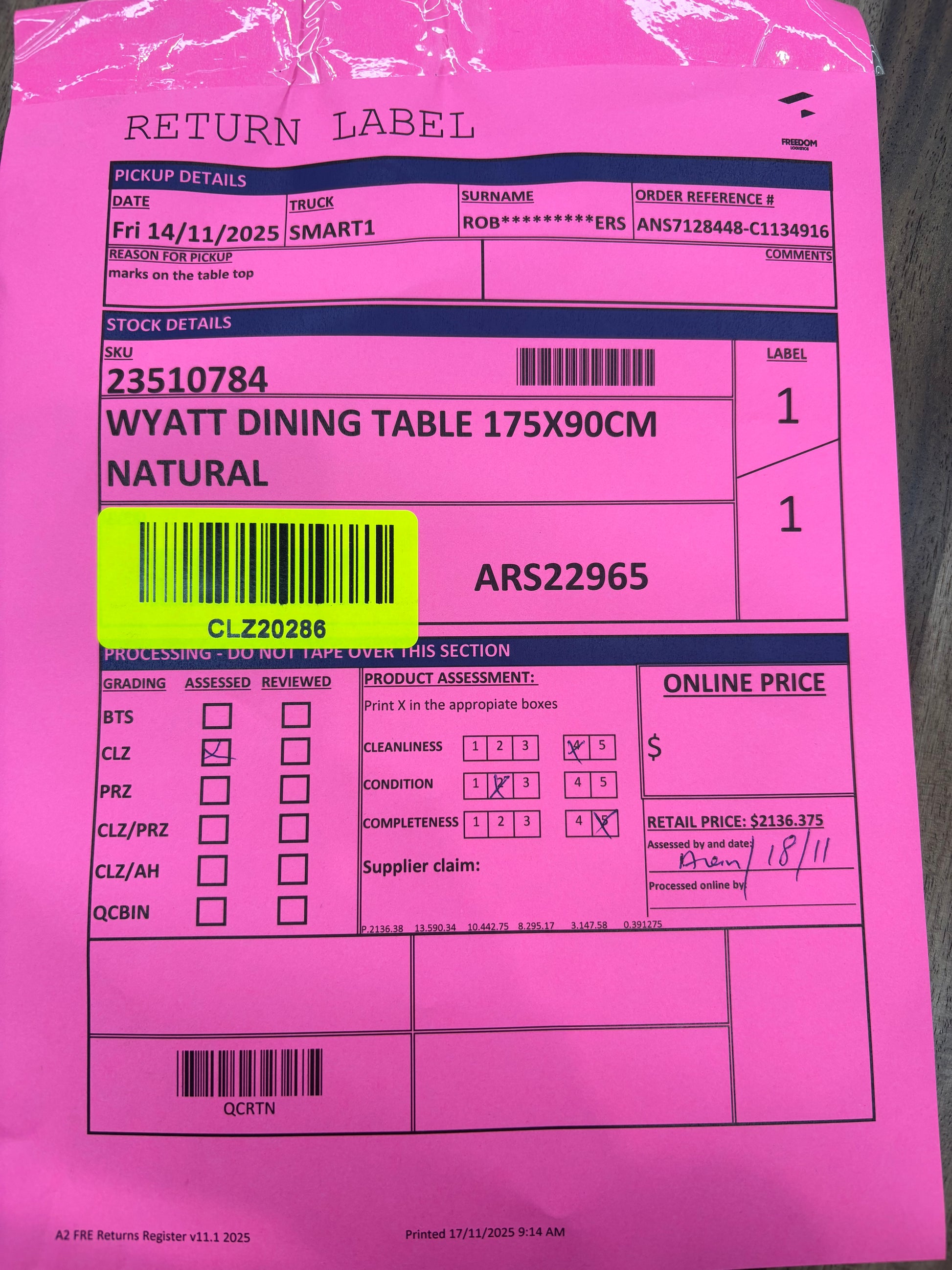 ASSESSORS NOTES: Under certain lighting, you can see a finishing issue