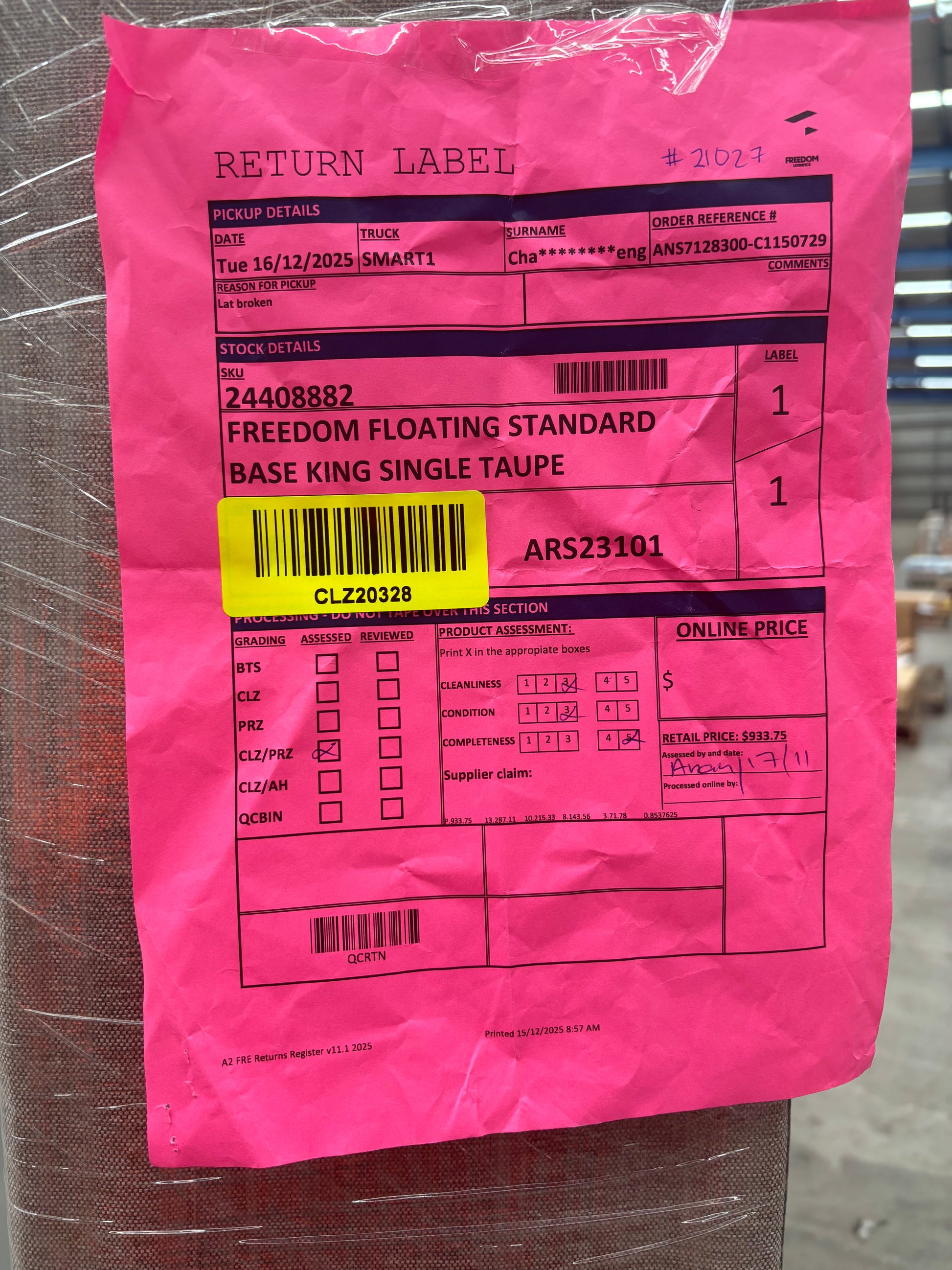 RETURN REASON: Inner slat broken
