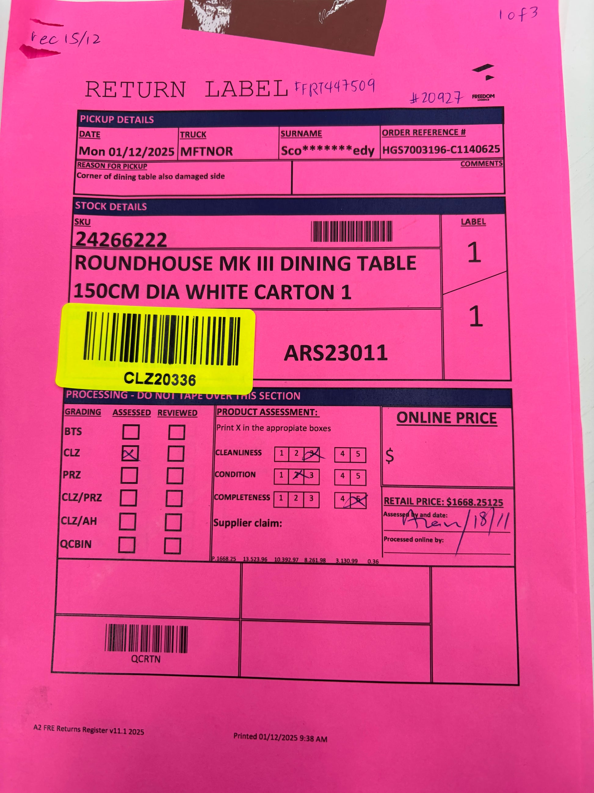NZ CLZ20336 Roundhouse MK II Dining Table 150cm Dia White