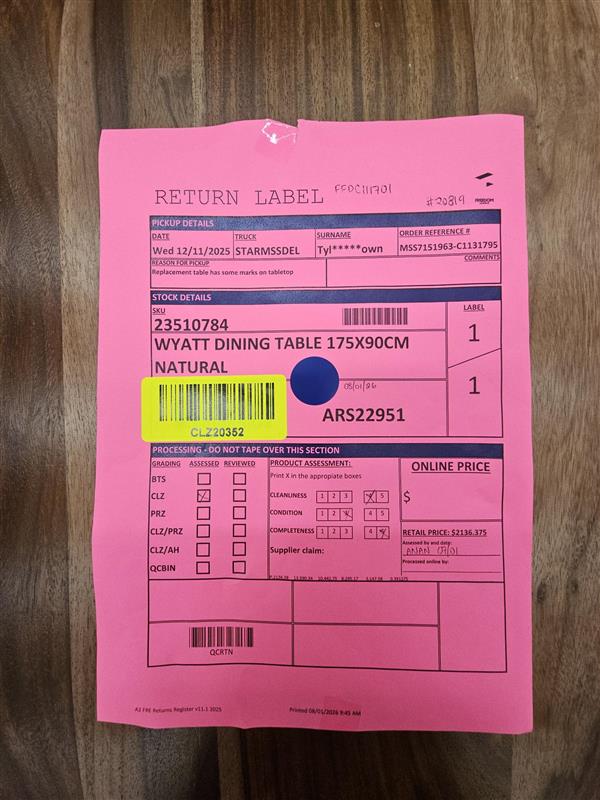 RETURN REASON: Marks on tabletopÂ