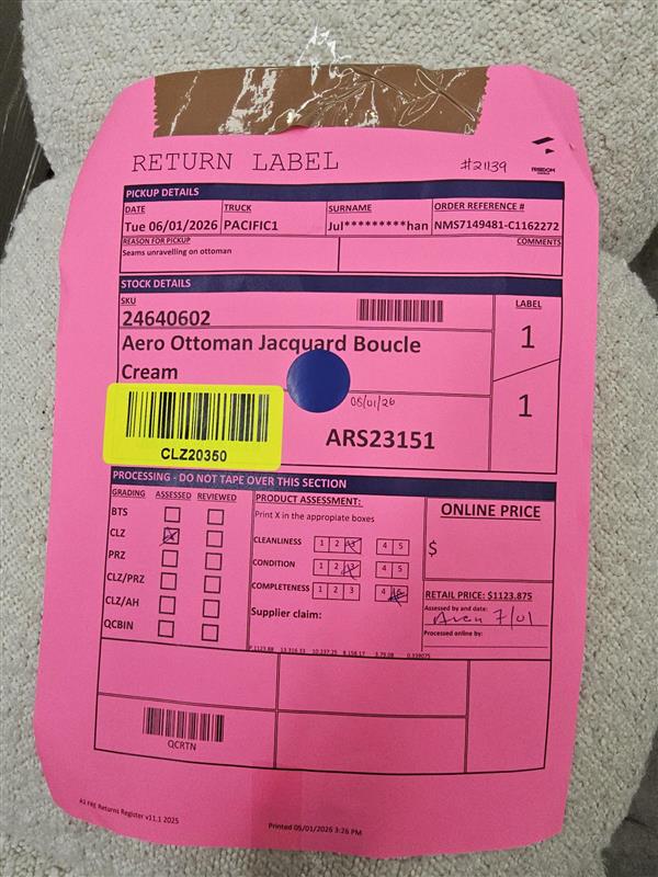 RETURN REASON: Seams unravelling