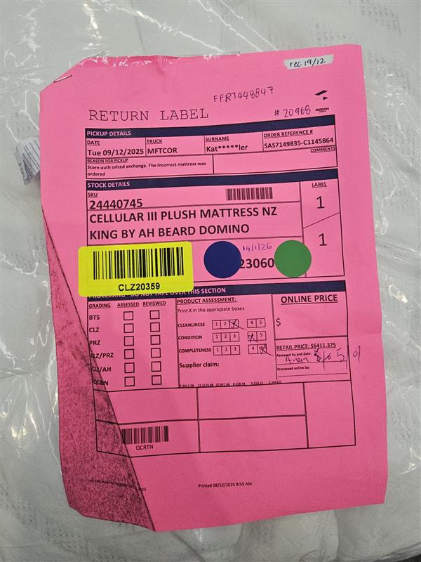 NZ CLZ20359 Cellular III Plush Mattress NZ King by AH Beard Domino
