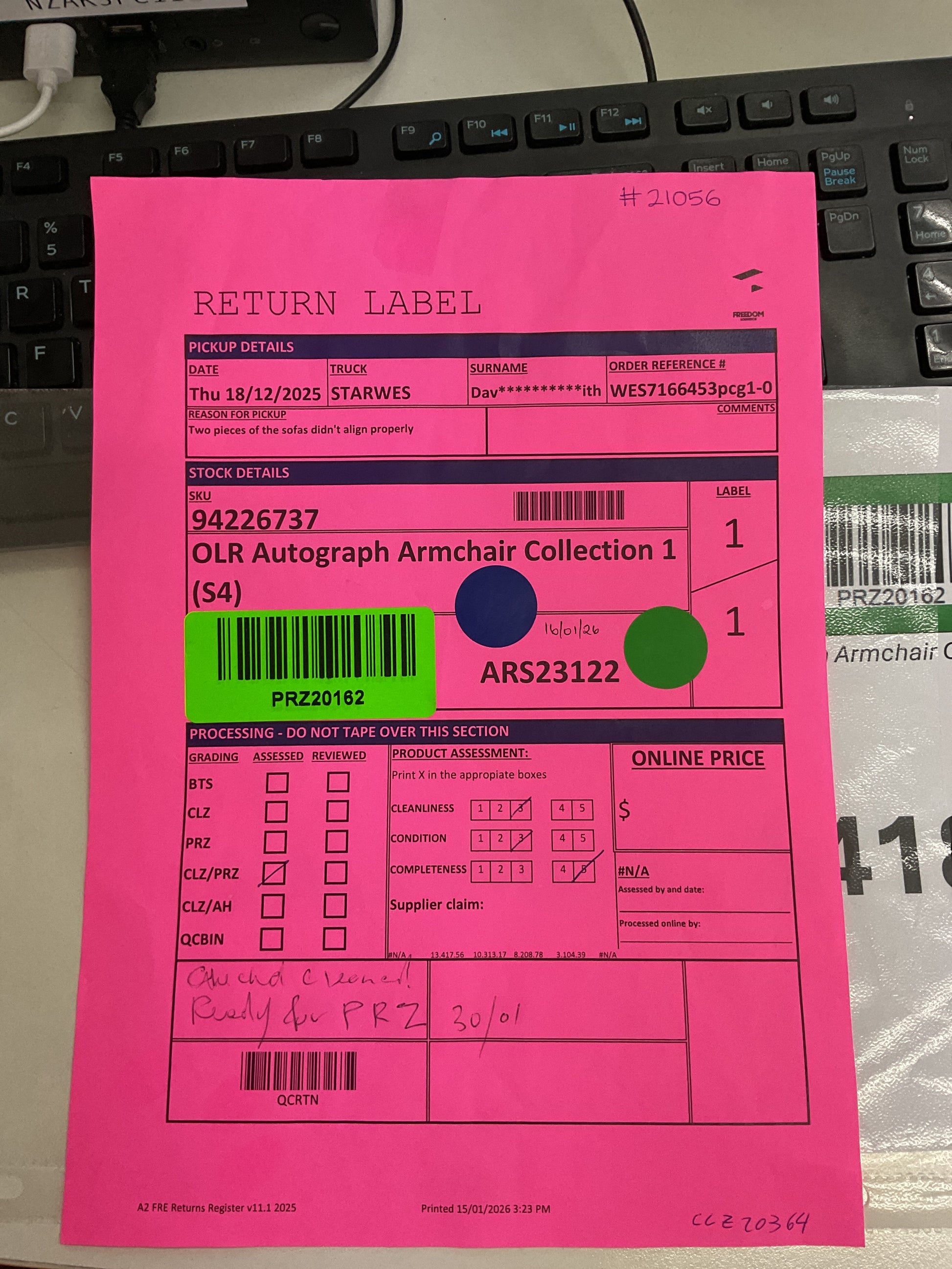RETURN REASON: Minor Scuff marksΒ