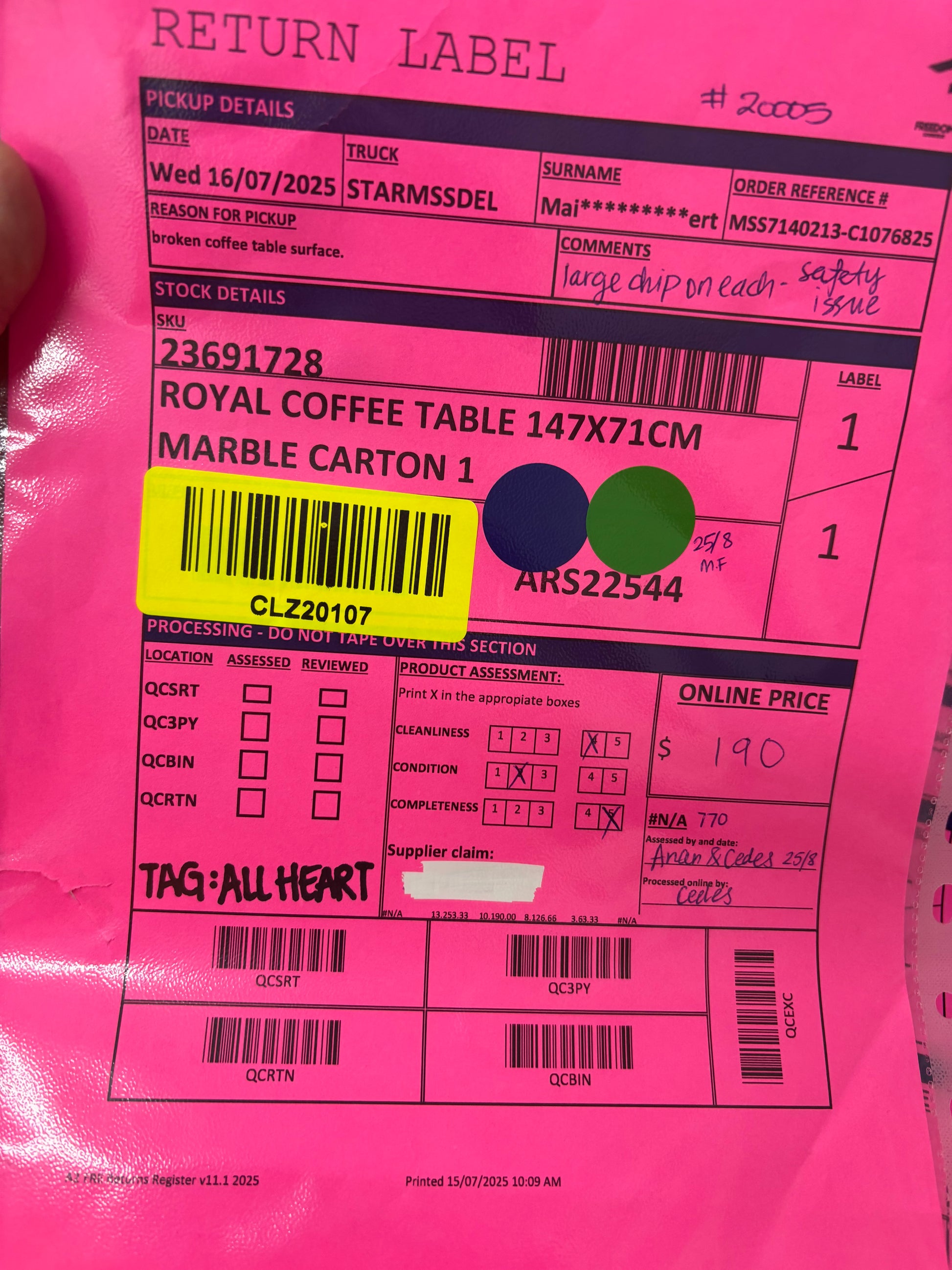 ASSESSOR NOTES: Large chip on tabletop. Quite sharp but could be sanded down. Potentially un-safe. Still in original packaging.Â