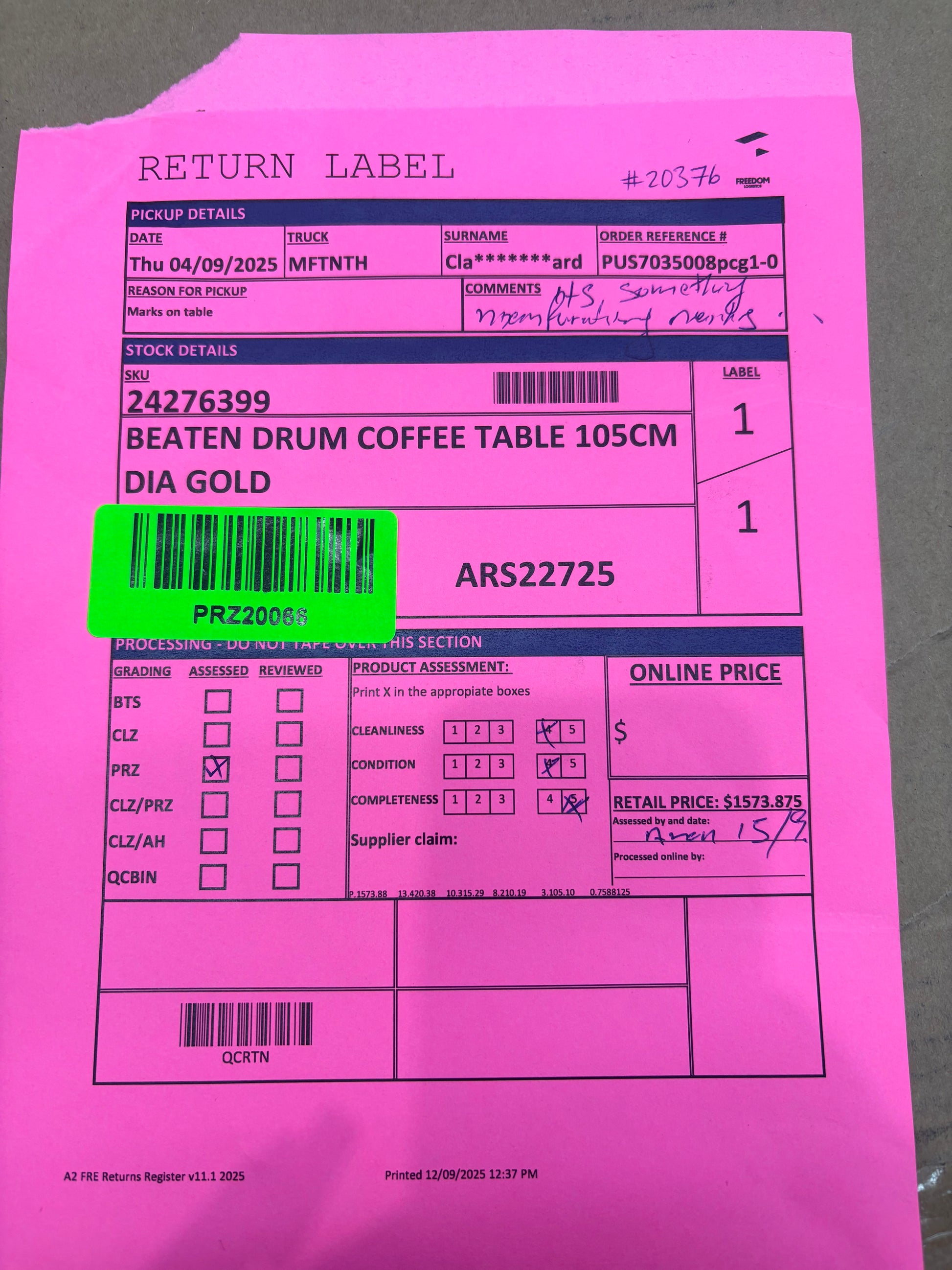 NZ PRZ20066 Beaten Drum Coffee Table 105cm Dia Gold