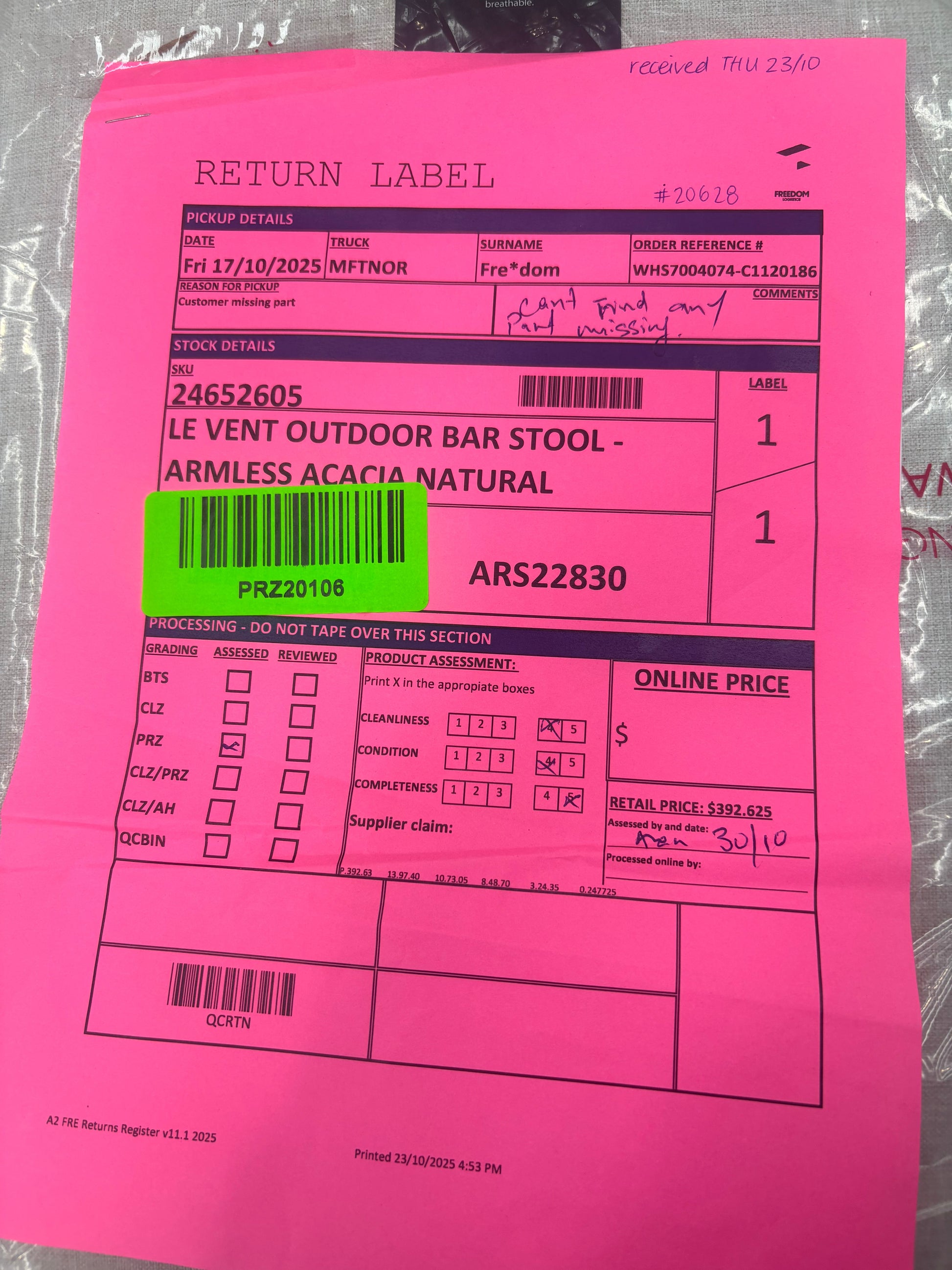 NZ PRZ20106 Le Vent Outdoor Bar Stool - Armless Acacia Natural
