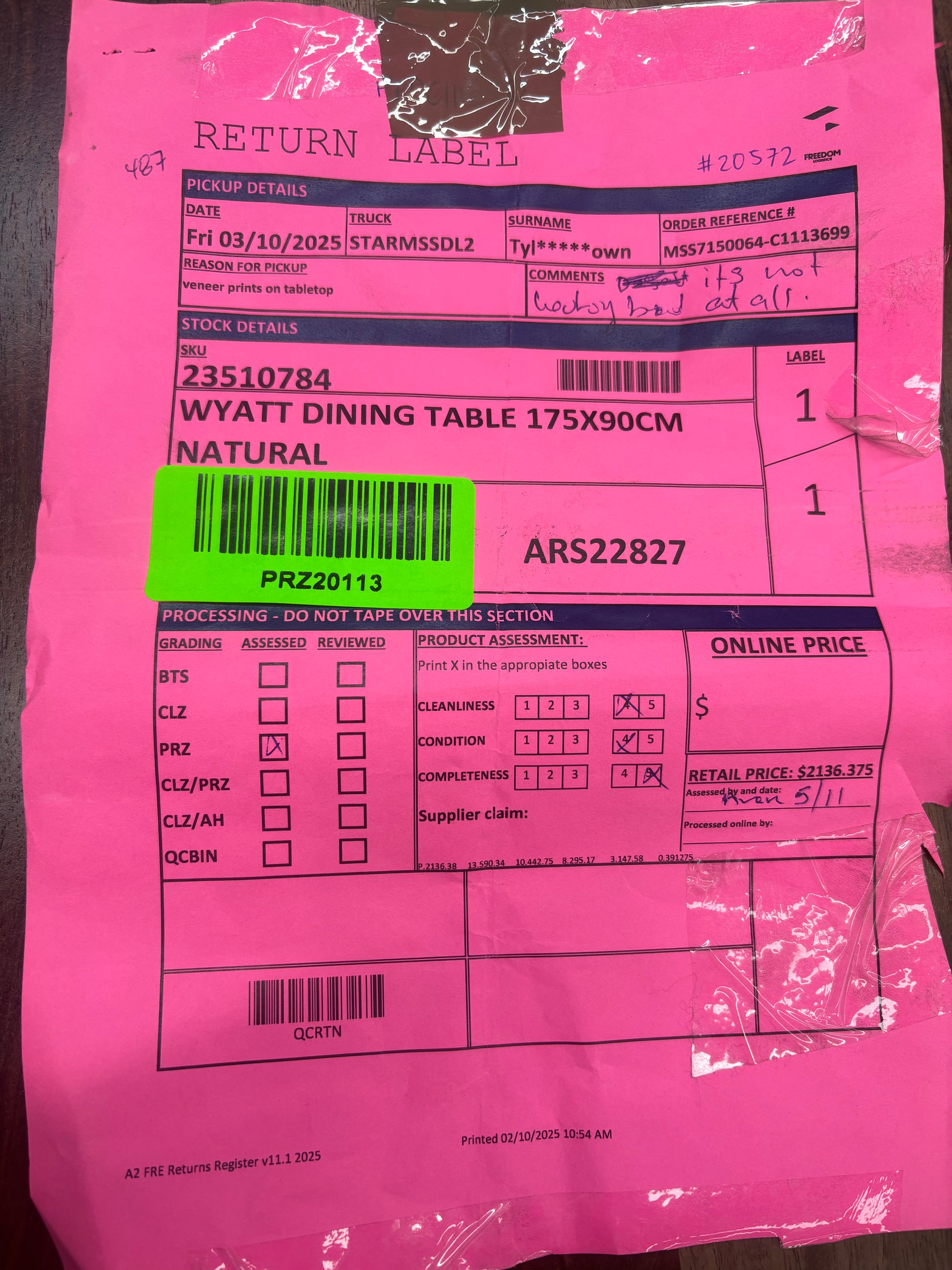NZ PRZ20113 Wyatt Dining Table 175x90cm Natural