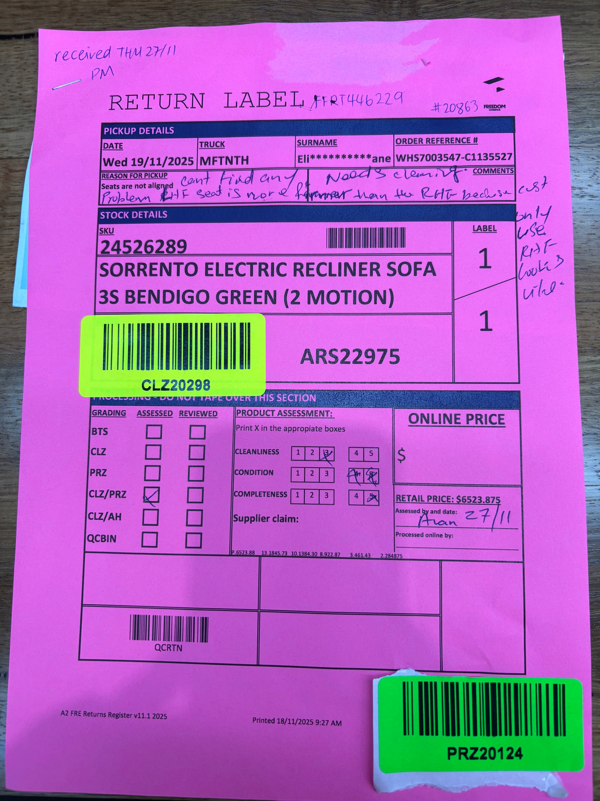 ASSESSOR NOTES: This has now been aligned and refurbished